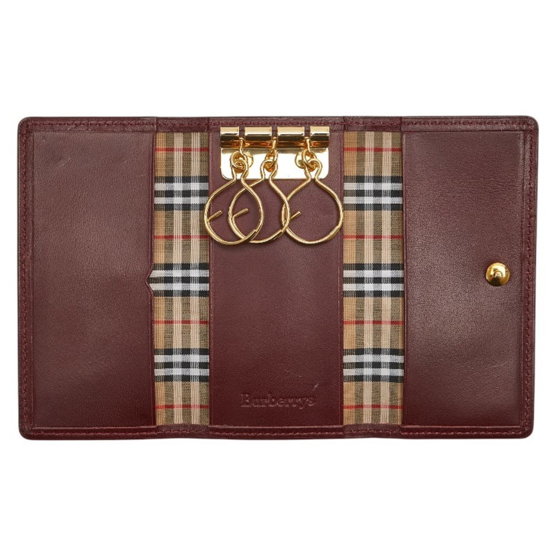 Burberry Nova Check 3-Ring Key Case In Wine Red