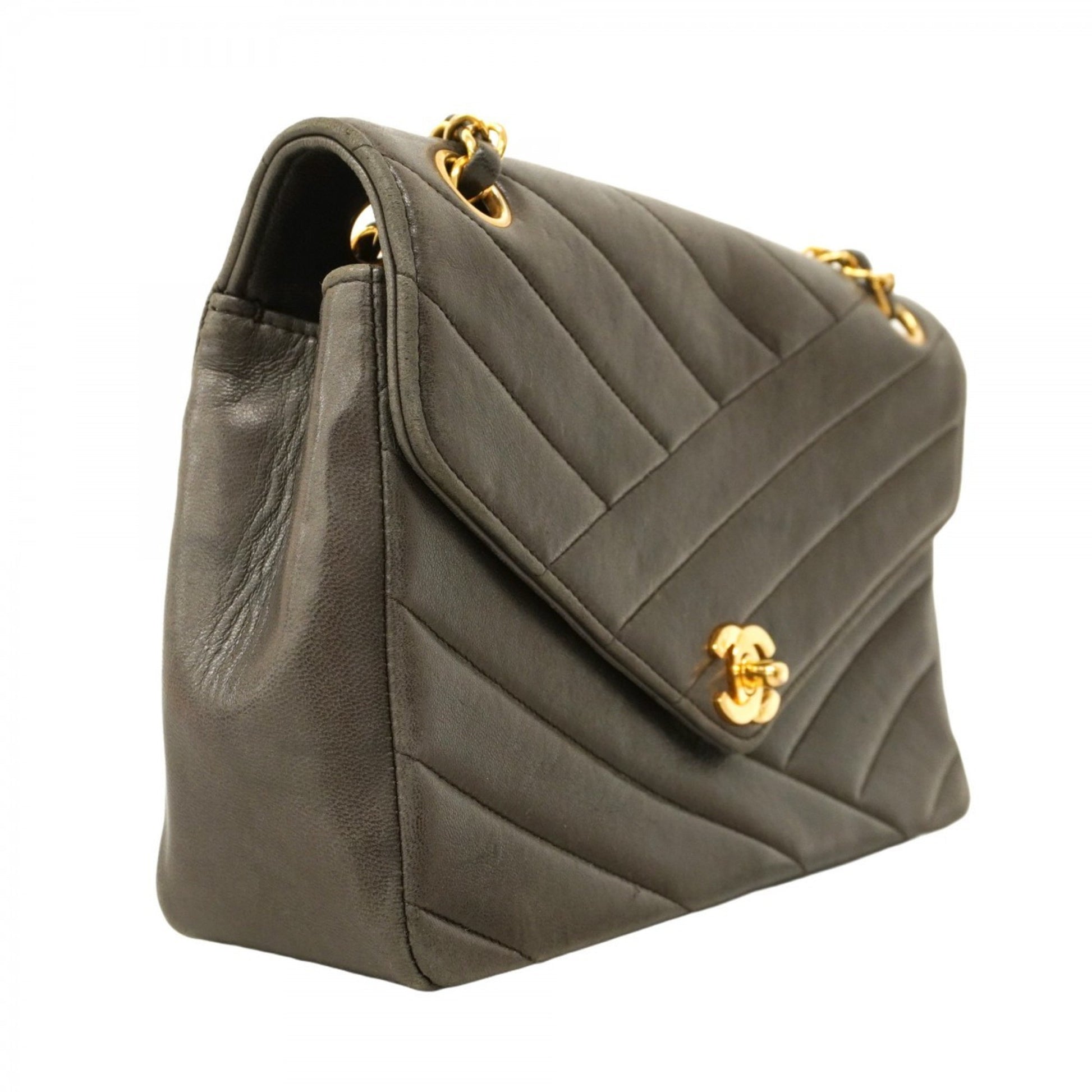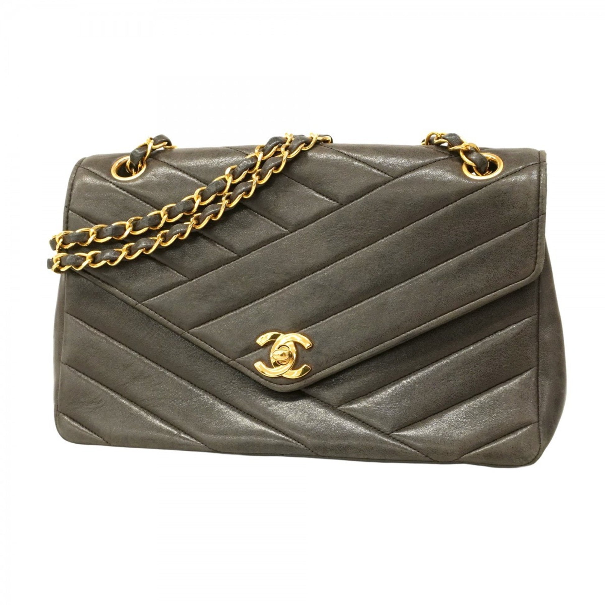 Chanel Shoulder Bag W Chain Chevron Lambskin Black
