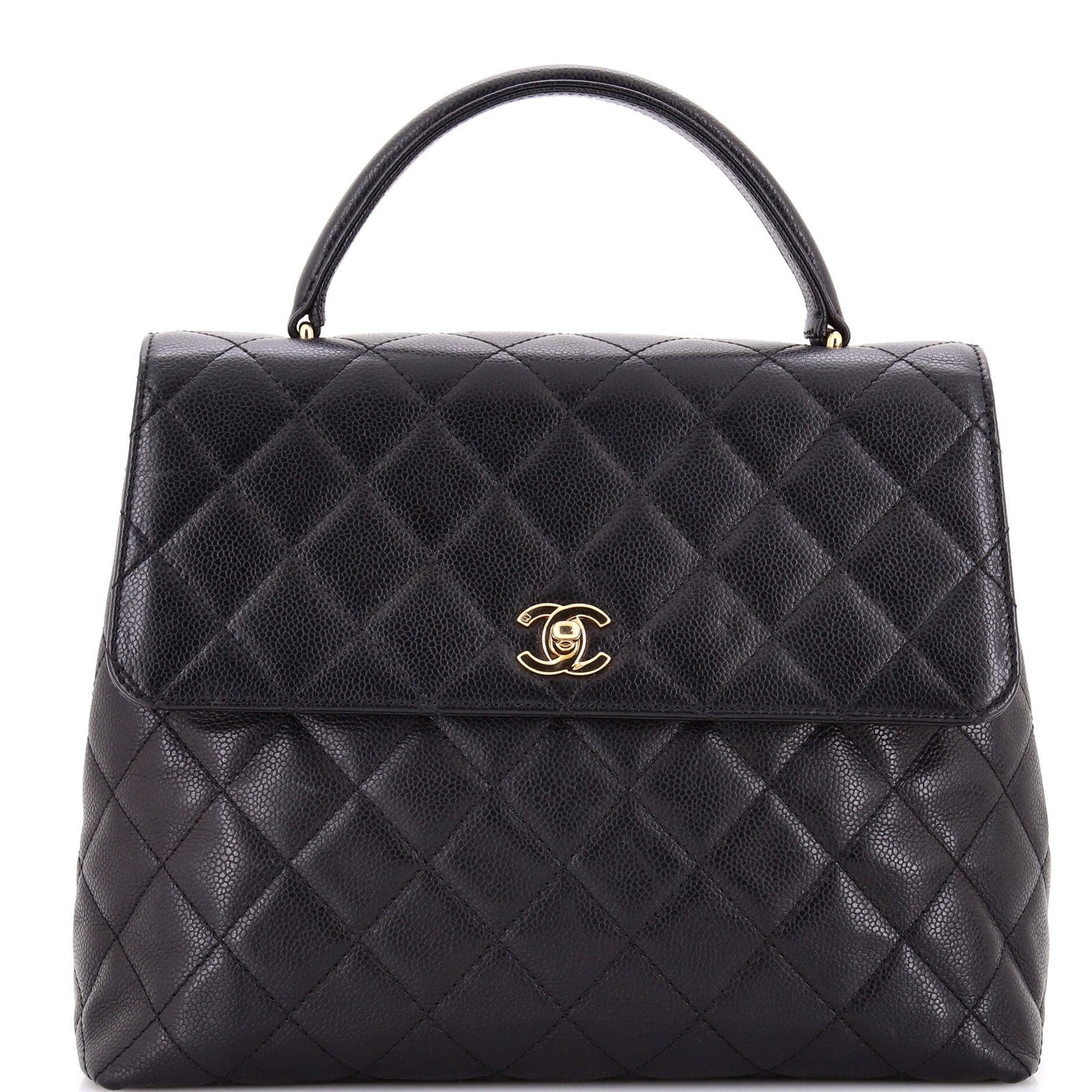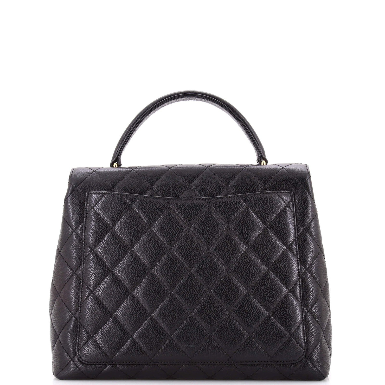 Chanel Vintage Classic Top Handle Flap Bag Quilted Caviar Jumbo
