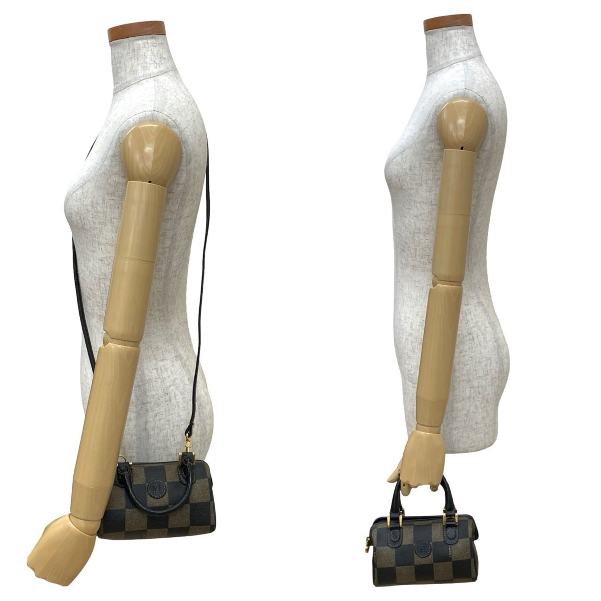 Fendi Ff Logo Pecan Check Leather 2-Way Mini Handbag/Shoulder Bag