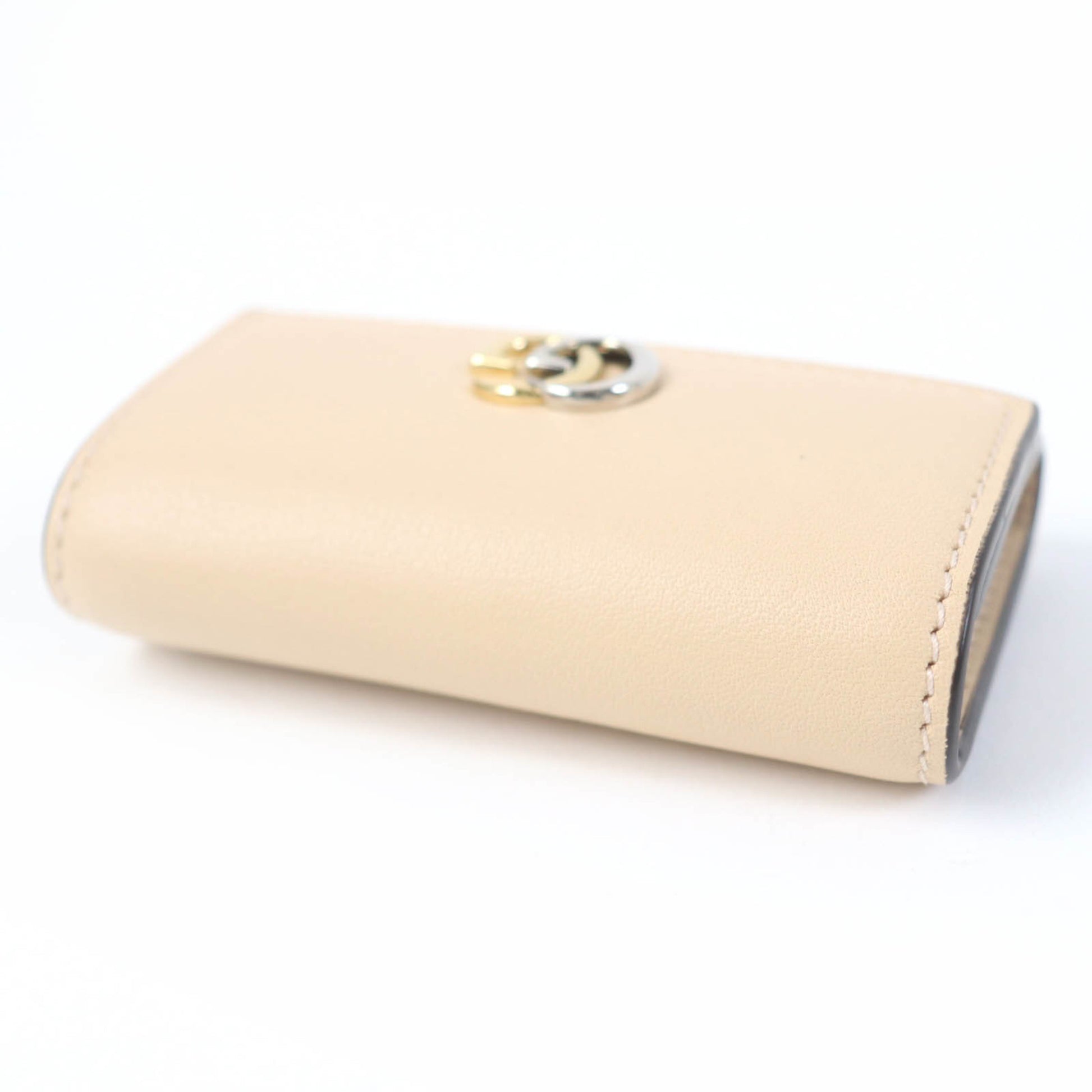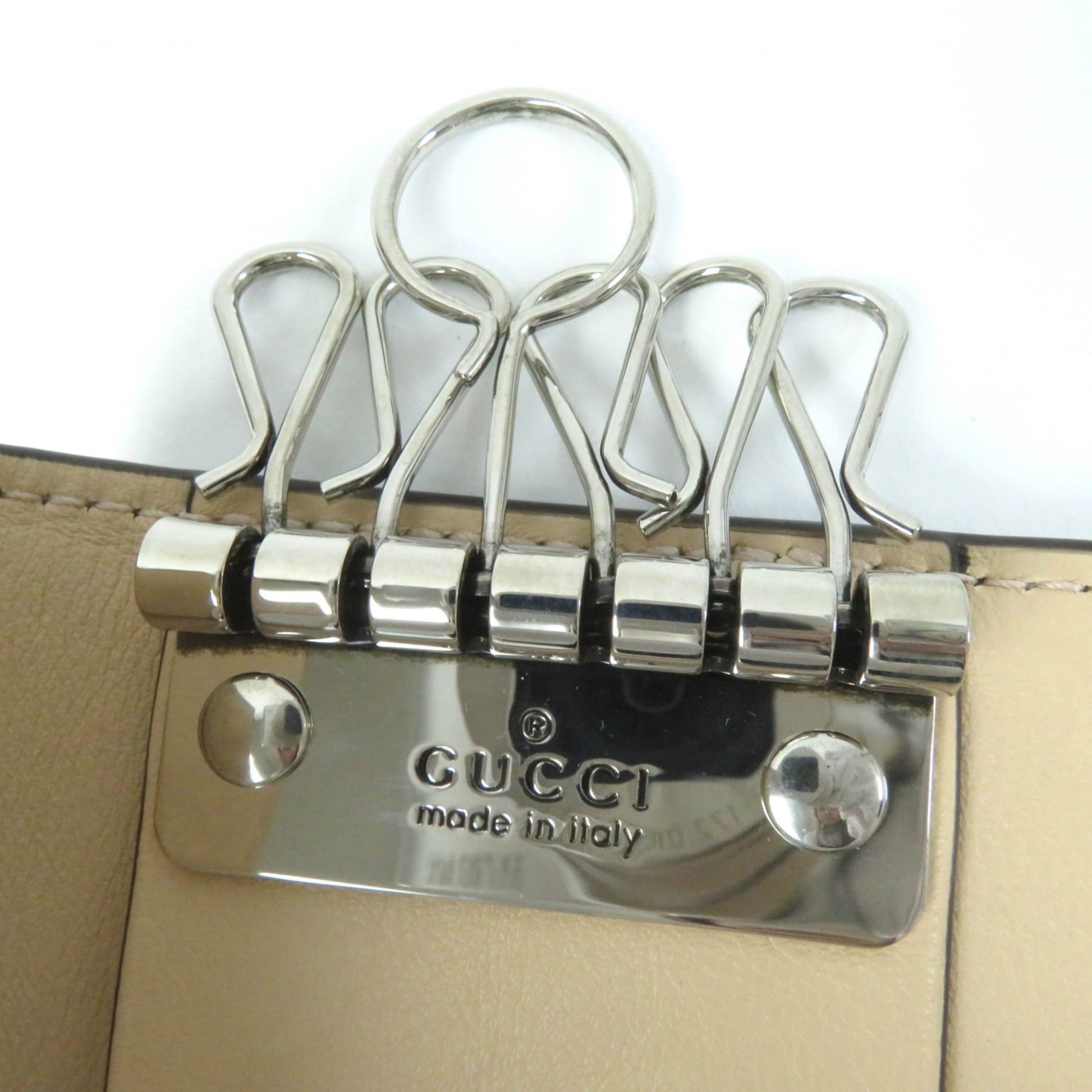 Gucci 795649 Double G Key Case In Beige Leather And Gg Supreme Canvas