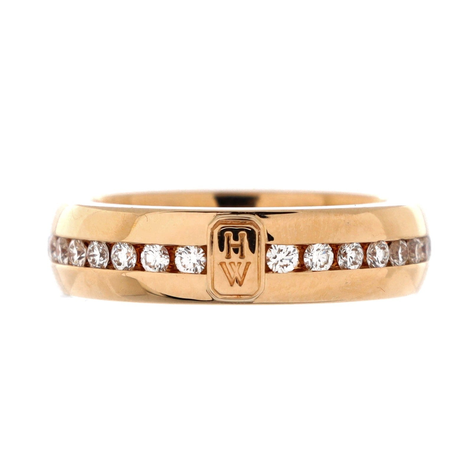 Harry Winston Hw Logo Band Ring 18K Rose Gold And Diamonds