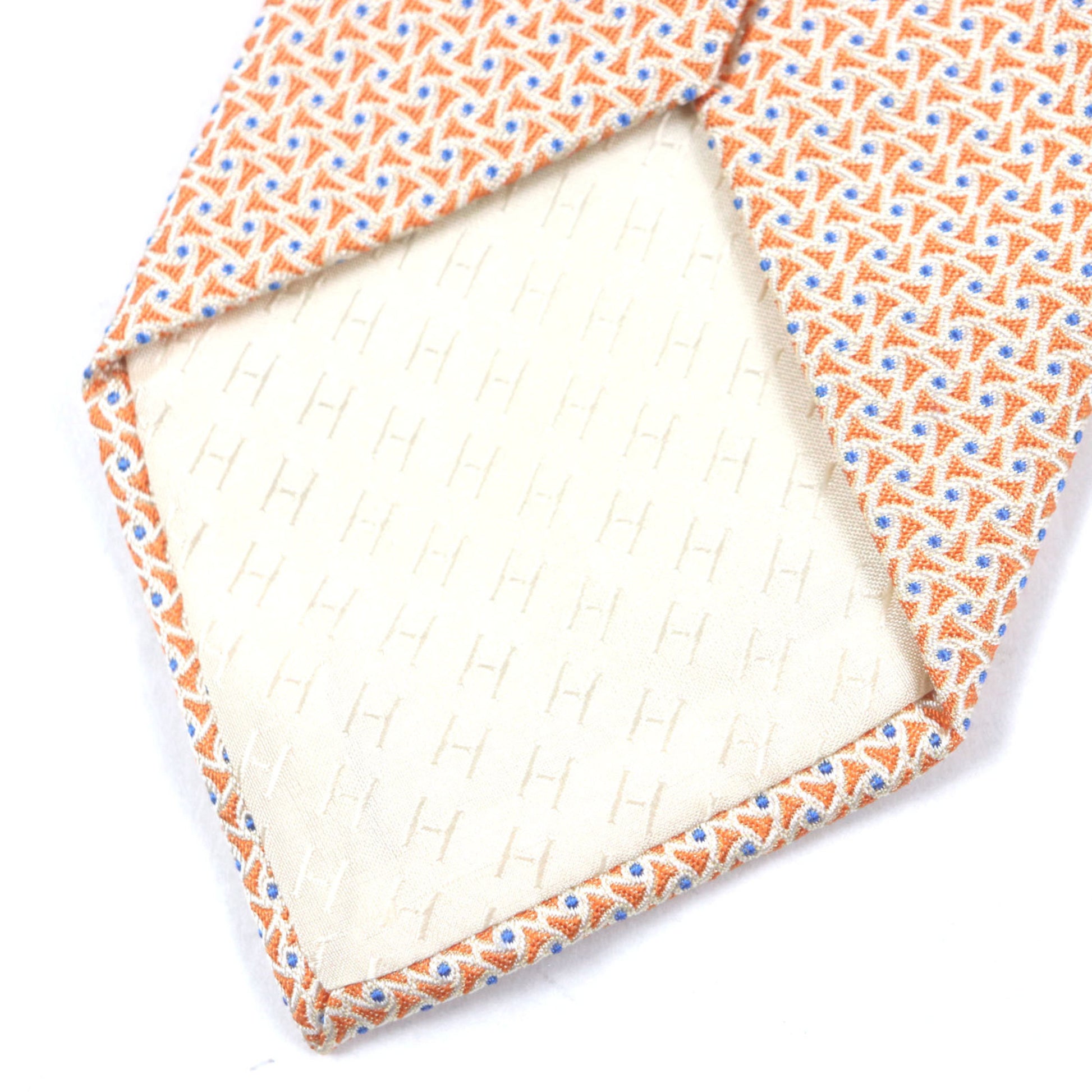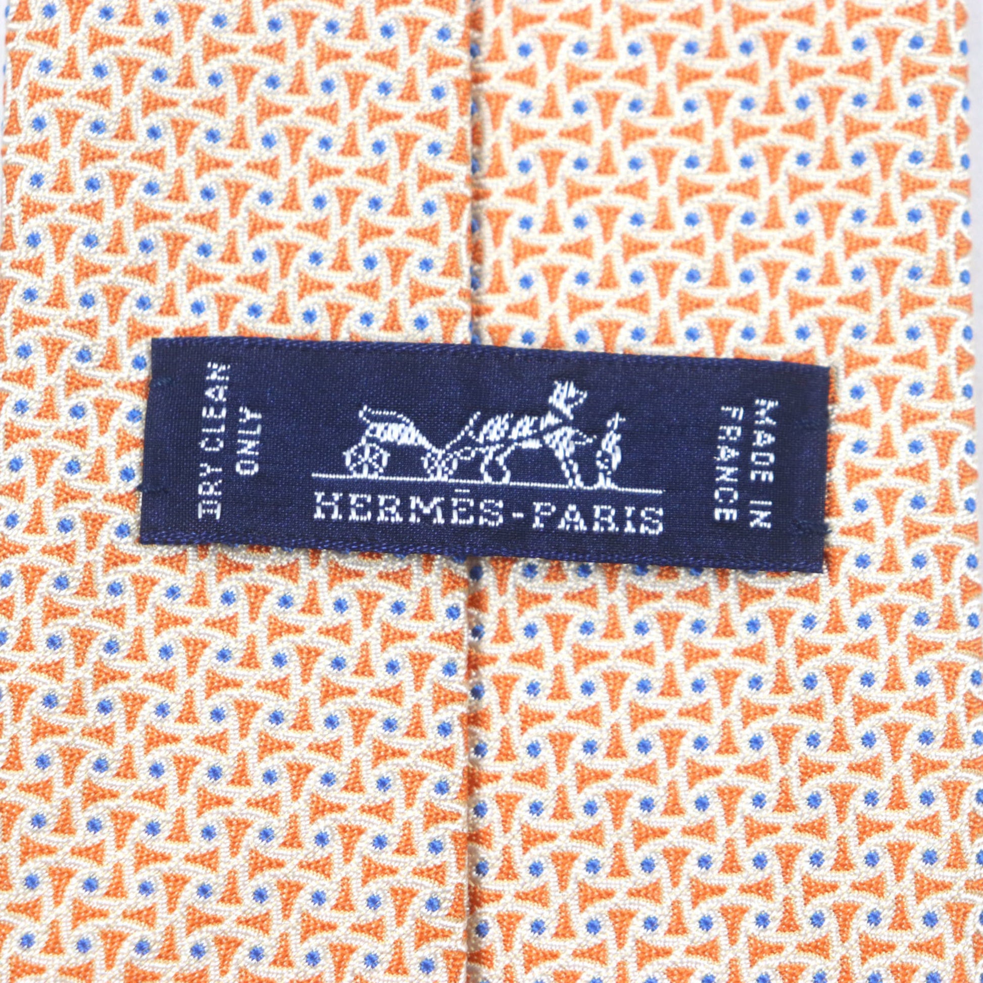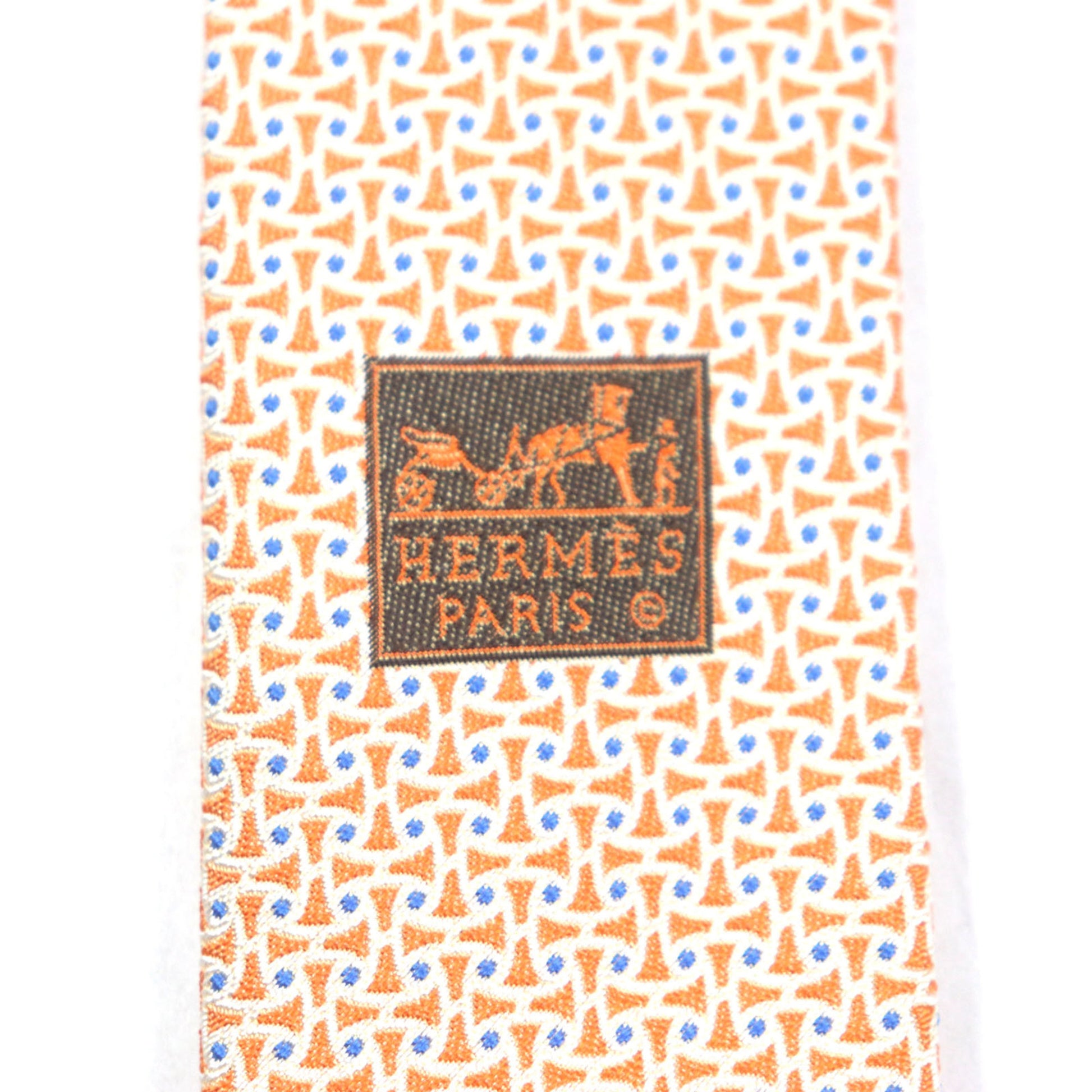 Hermes 659082T 100% Silk All-Over Print Tie In Orange And Blue