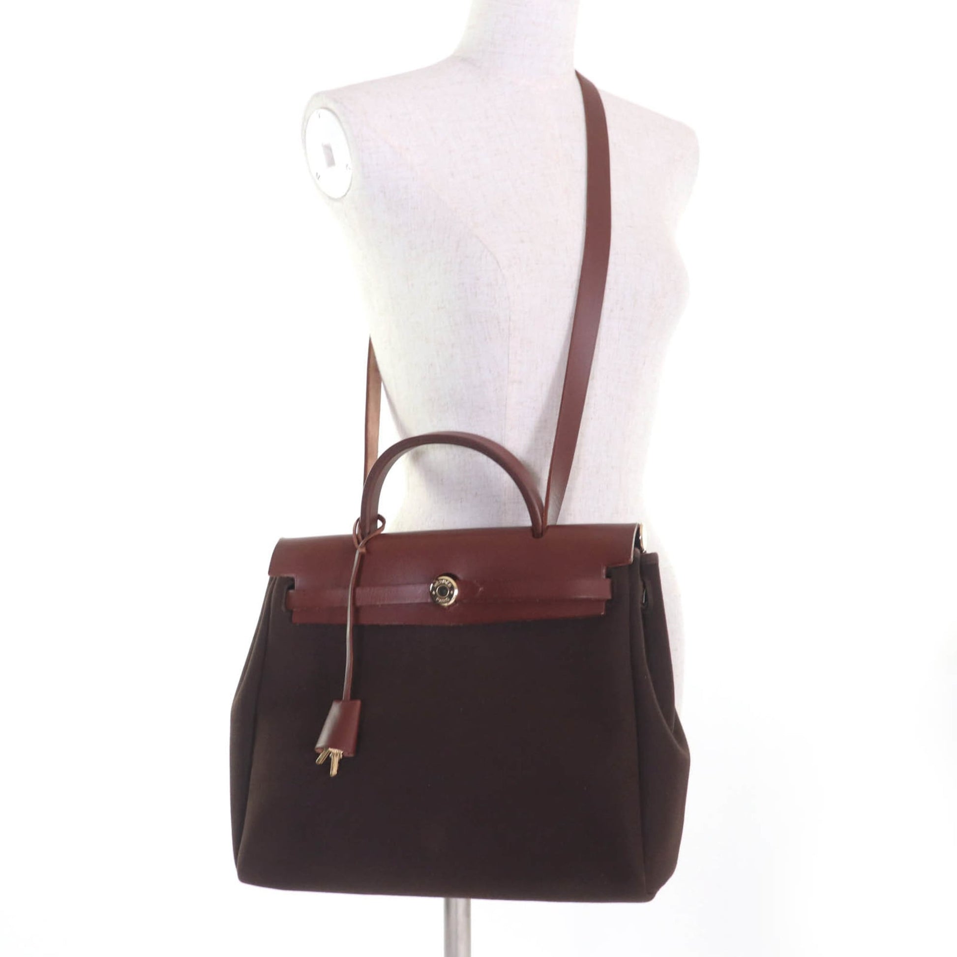 Hermes Airbag Pm Toile Officier Vibrato Shoulder Bag With Gold Hardware