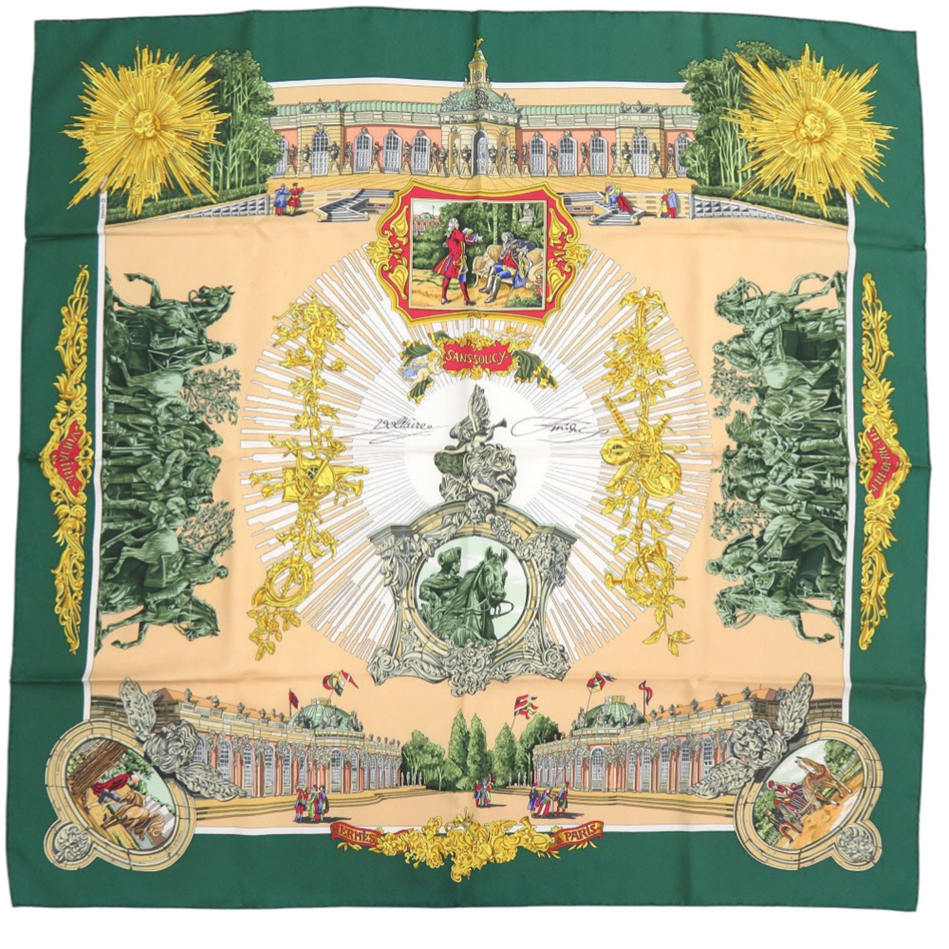 Hermes Herms Carr 90 Sanssouci Palace Silk Scarf Muffler In Green