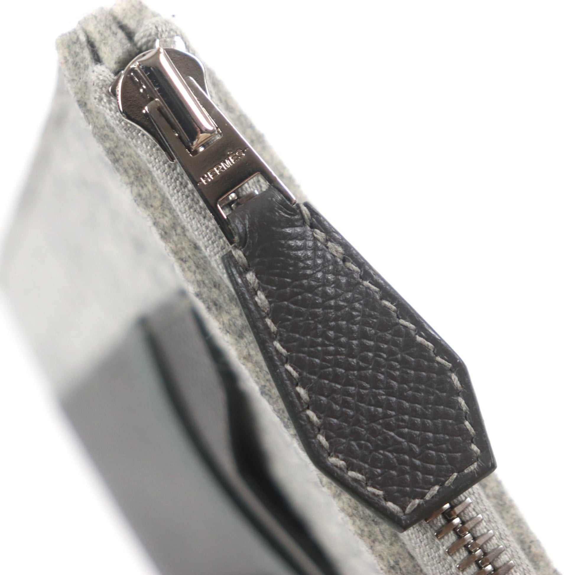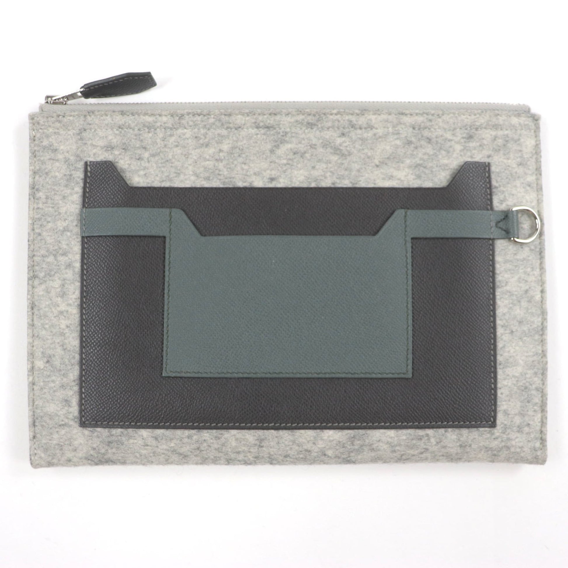 Hermes Too Doo 29 Felt And Epsom Leather Flat Pouch/Clutch Bag With Silver Hardware