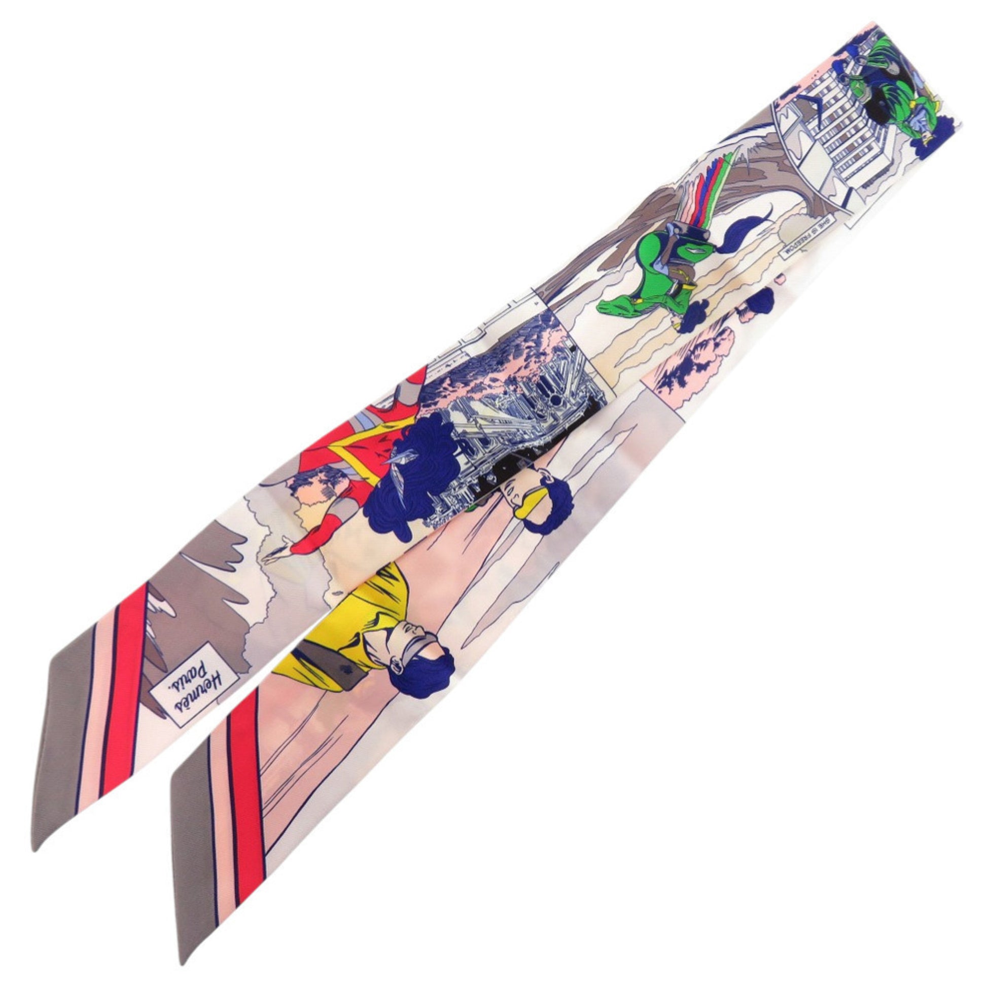 Herms Twilly Wow American Comic Print Silk Gris Rose Vert Scarf Muffler 0197 Hermes