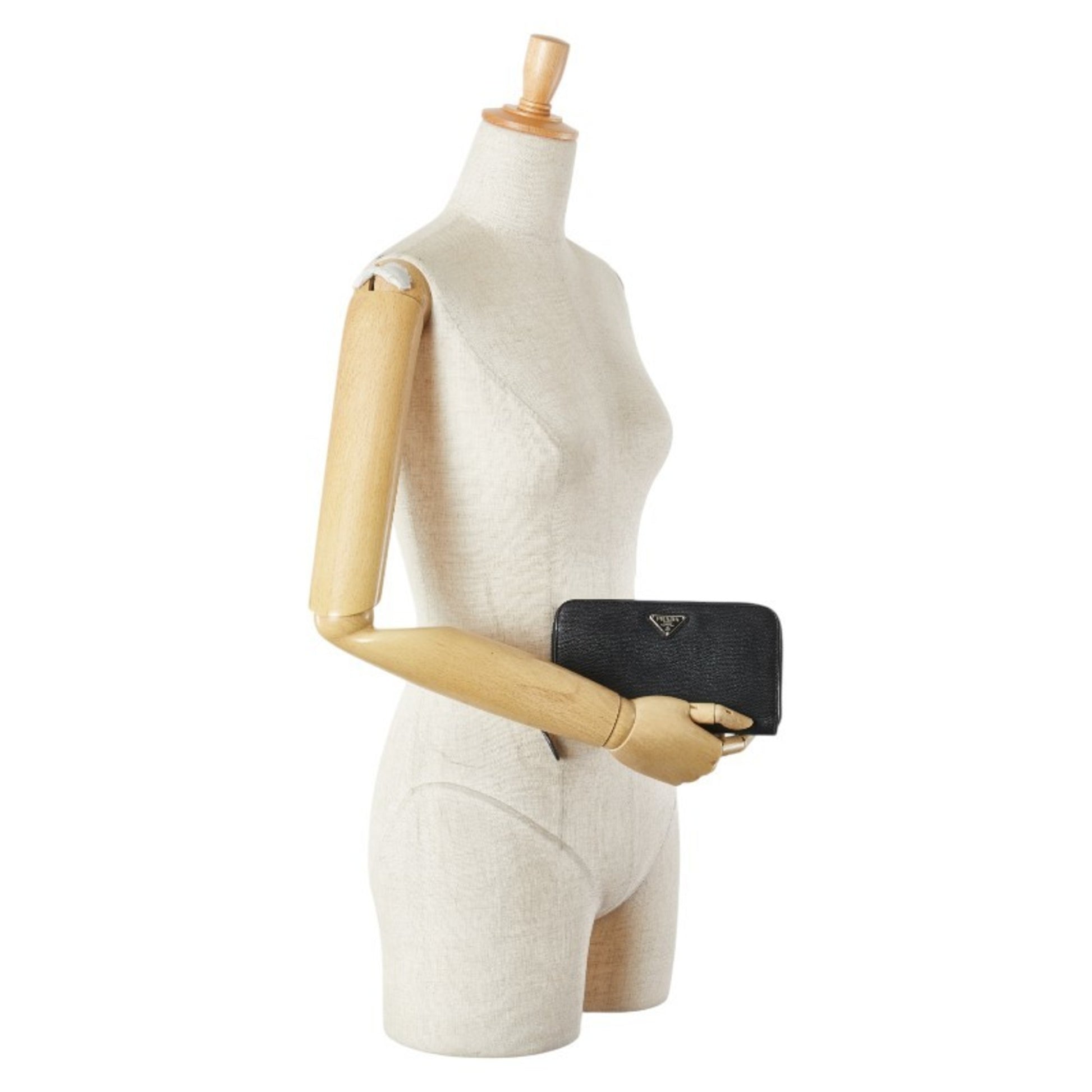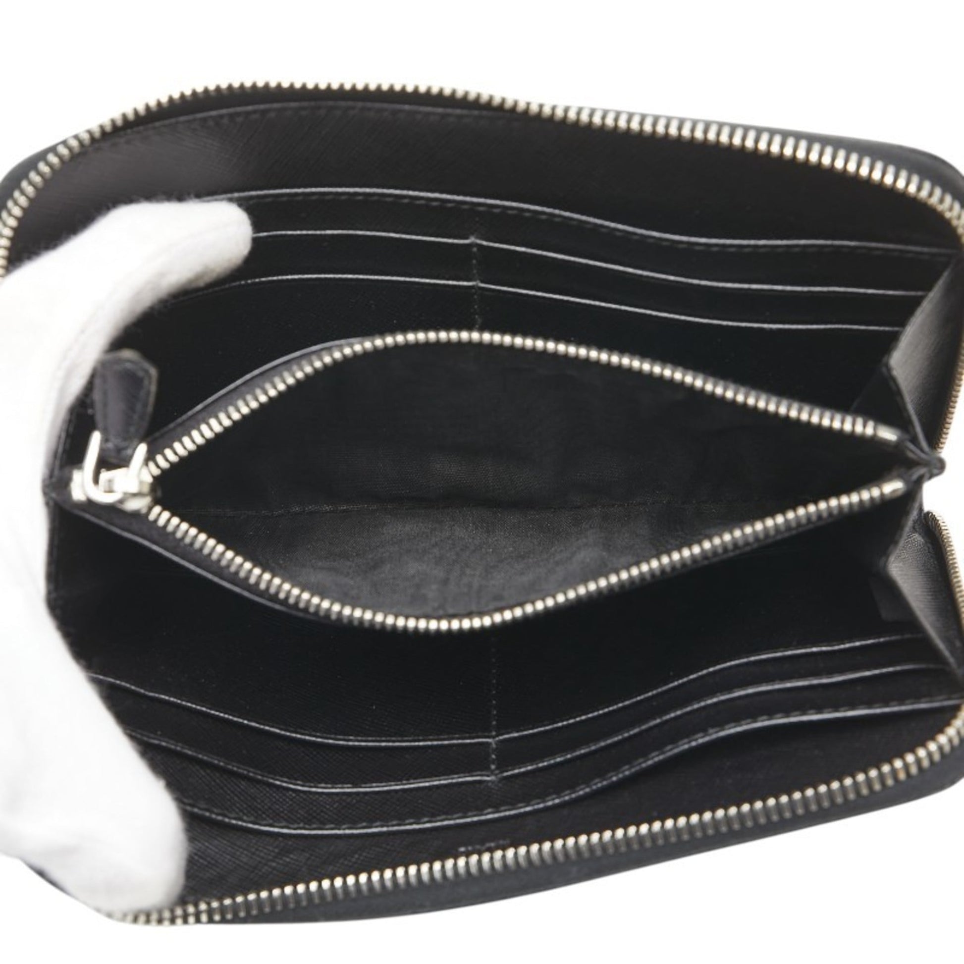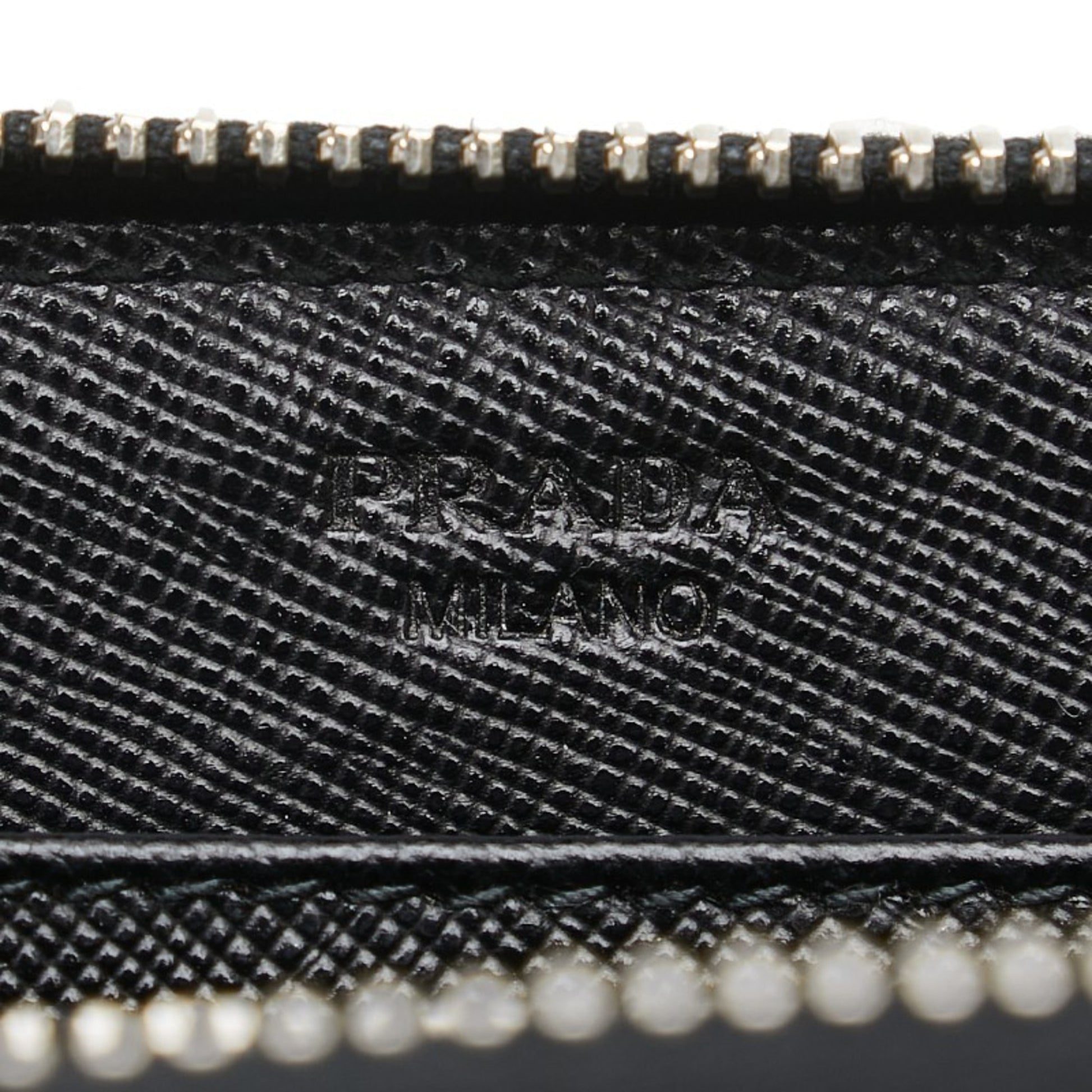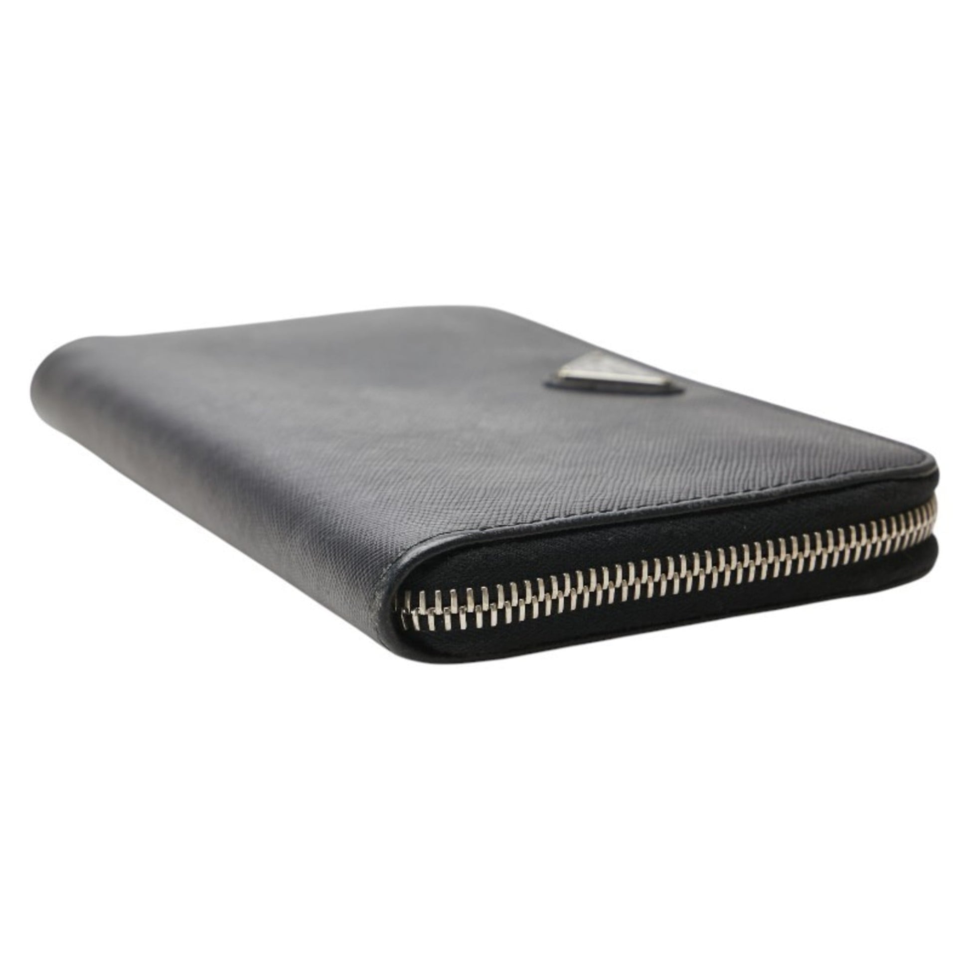 Prada Triangle Logo Plate Long Wallet Round Zipper Black Leather