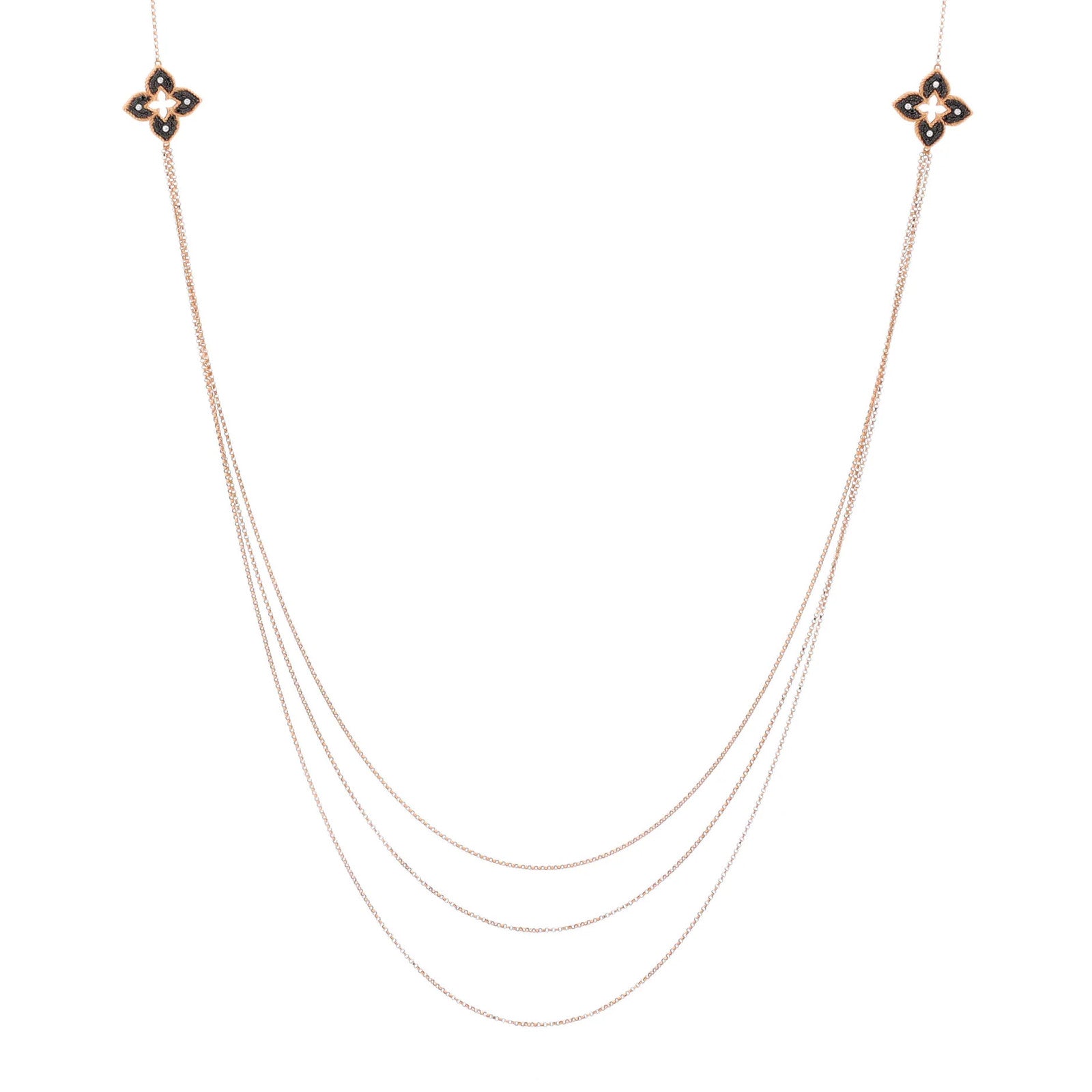 Model: Petite Venetian Princess Flower Three Strand Long Necklace 18K Rose Gold with Black and White Diamonds