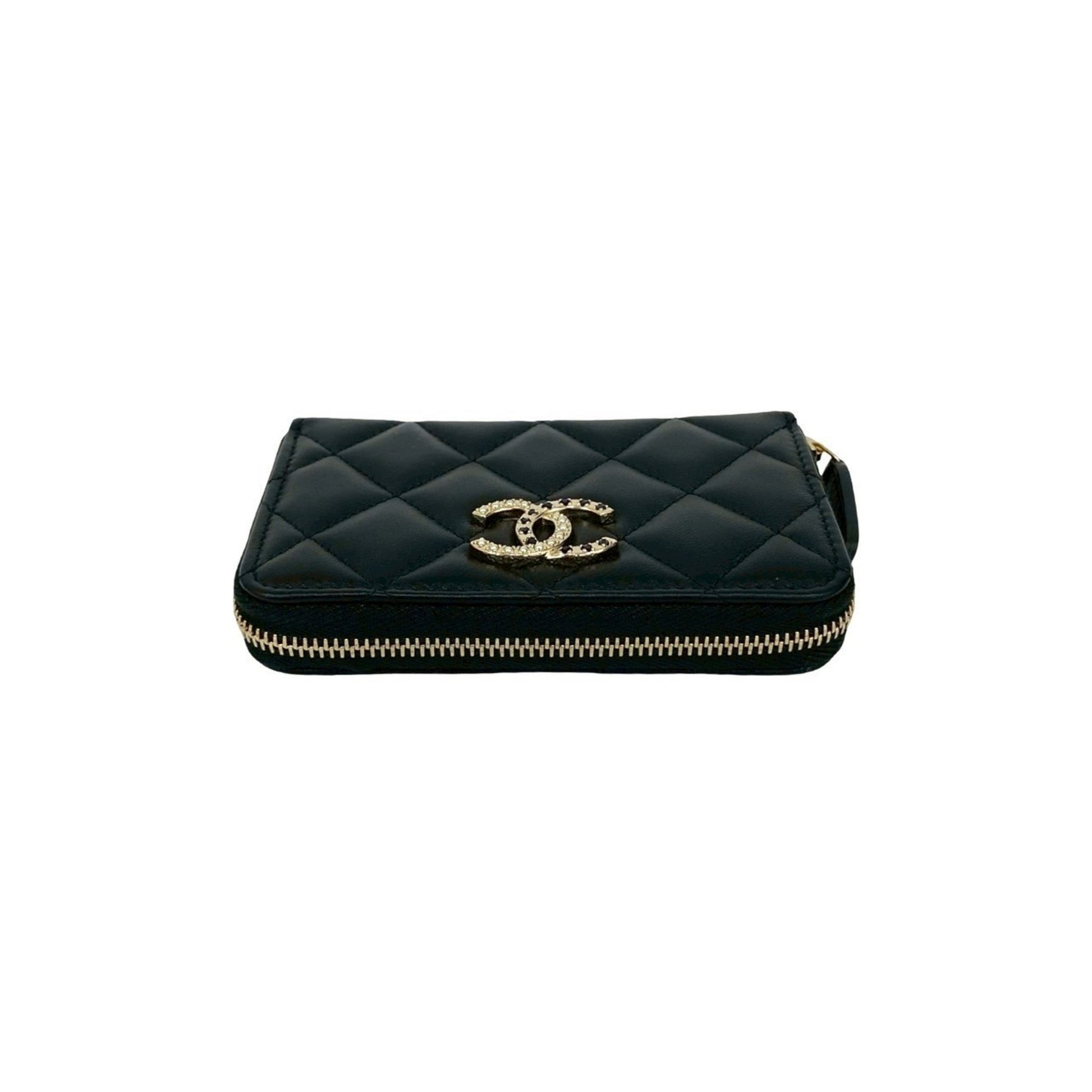 Unused Chanel Matelasse Coco Mark Rhinestone Lambskin Coin Case Wallet Black 21588