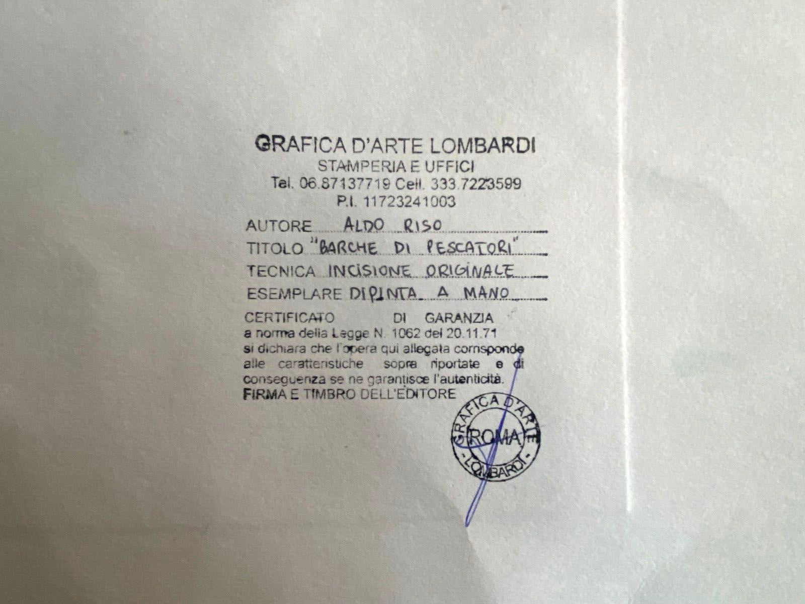 Aldo Riso ''Fishermen'S Boats'' - Hand-Painted Engraving Authenticated 60X80