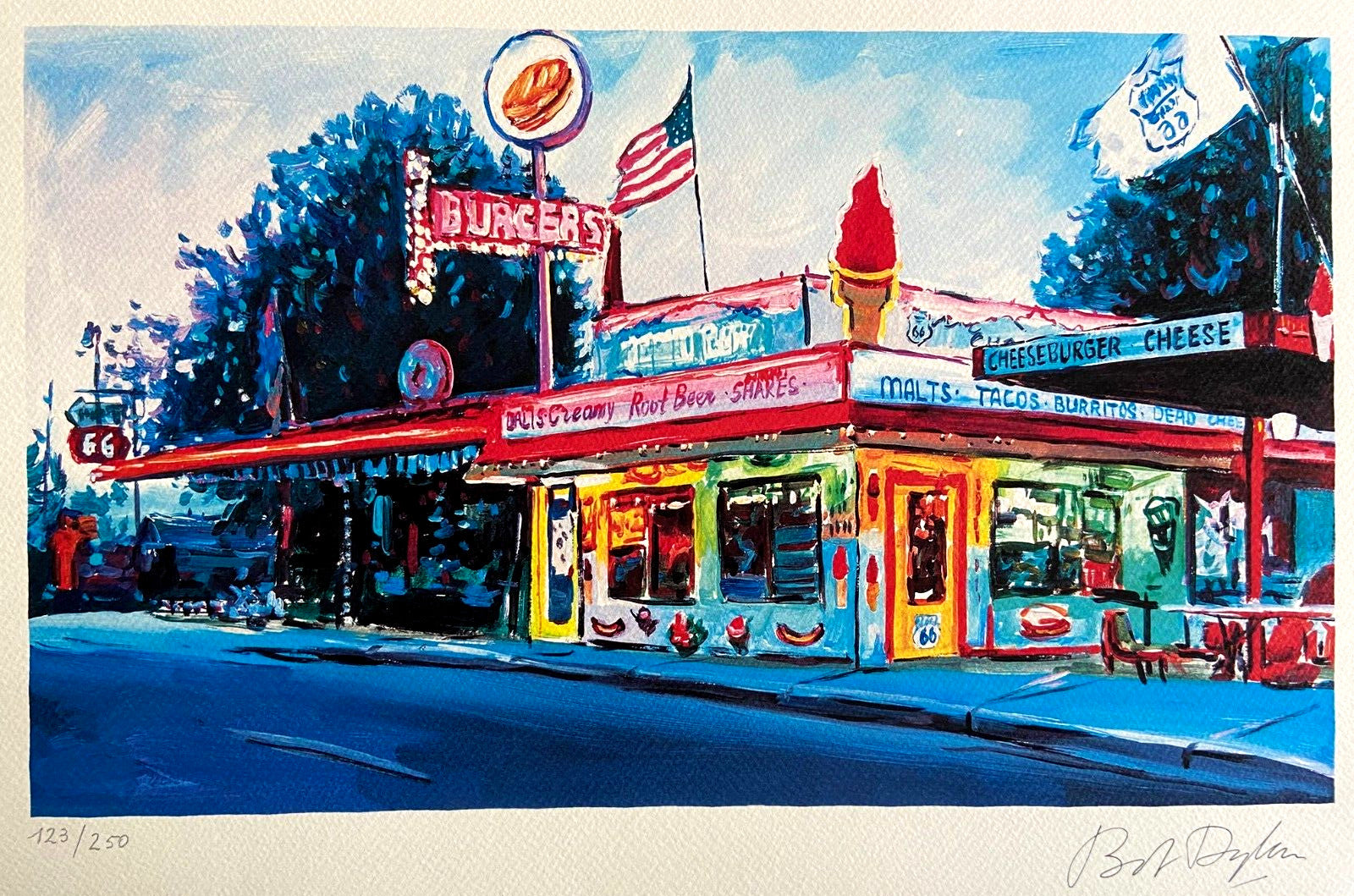Bob Dylan Lithograph "Route 66" Signed Coa Numbered Art Museum