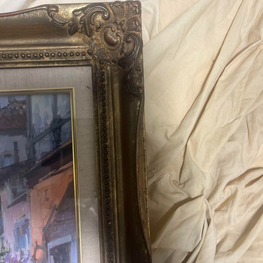 Original oil painting by Italian artist Claudio Simonetti, depicting a Venice canal scene, signed, framed, and in an Impressionist style.