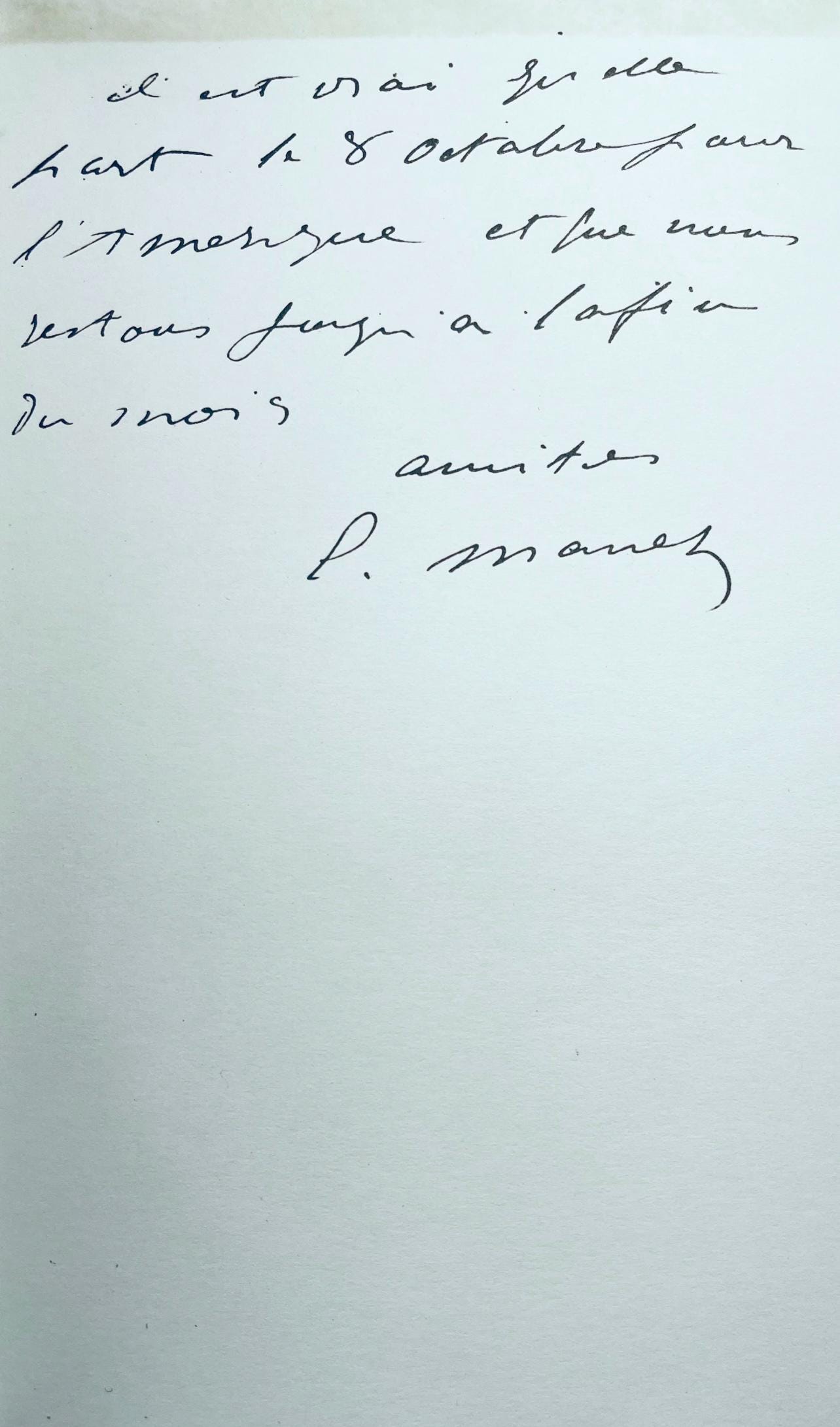 Excerpted from the folio, The twenty-one letters of douard Manet were reproduced in Pochoir Process by Raymond and Raymond, Inc., New York.