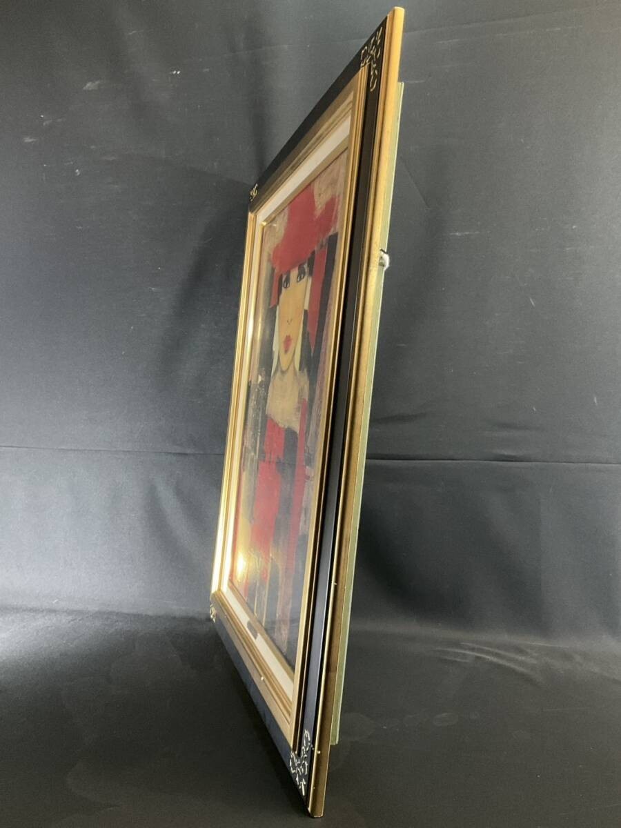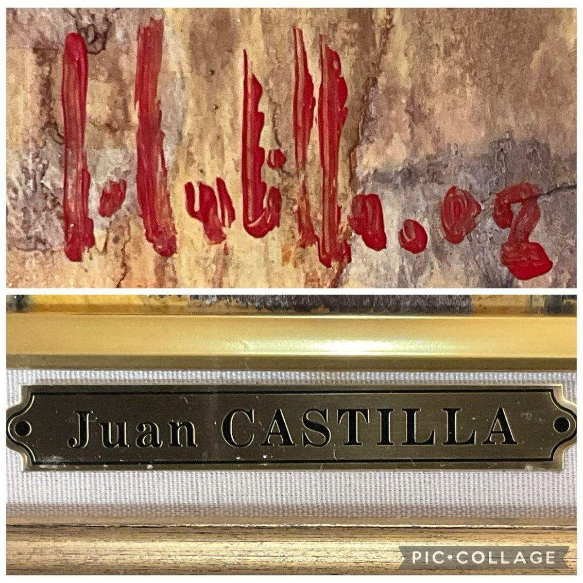 Juan Castilla's original mixed media painting, 'Lady in Red Hat,' is a large, signed, one-of-a-kind piece framed, showcasing modern Spanish art.
