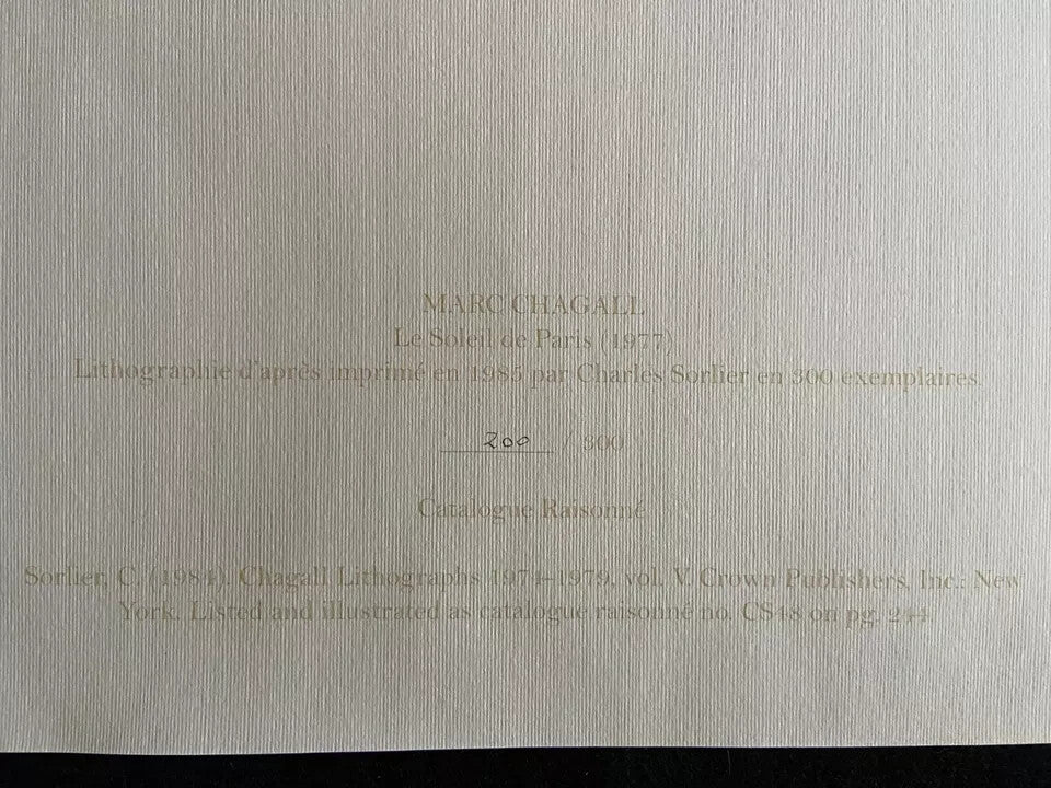 Marc Chagall Lithograph Coa Numbered Published - Sorlier