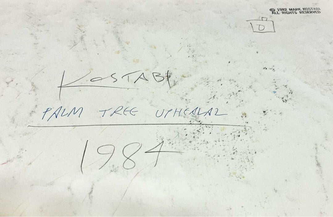 Original painting by Mark Kostabi from 1984, featuring black ink on paper, signed by the artist, and framed. This contemporary art piece, themed around a palm tree upheaval, is one of a kind and originates from New York.