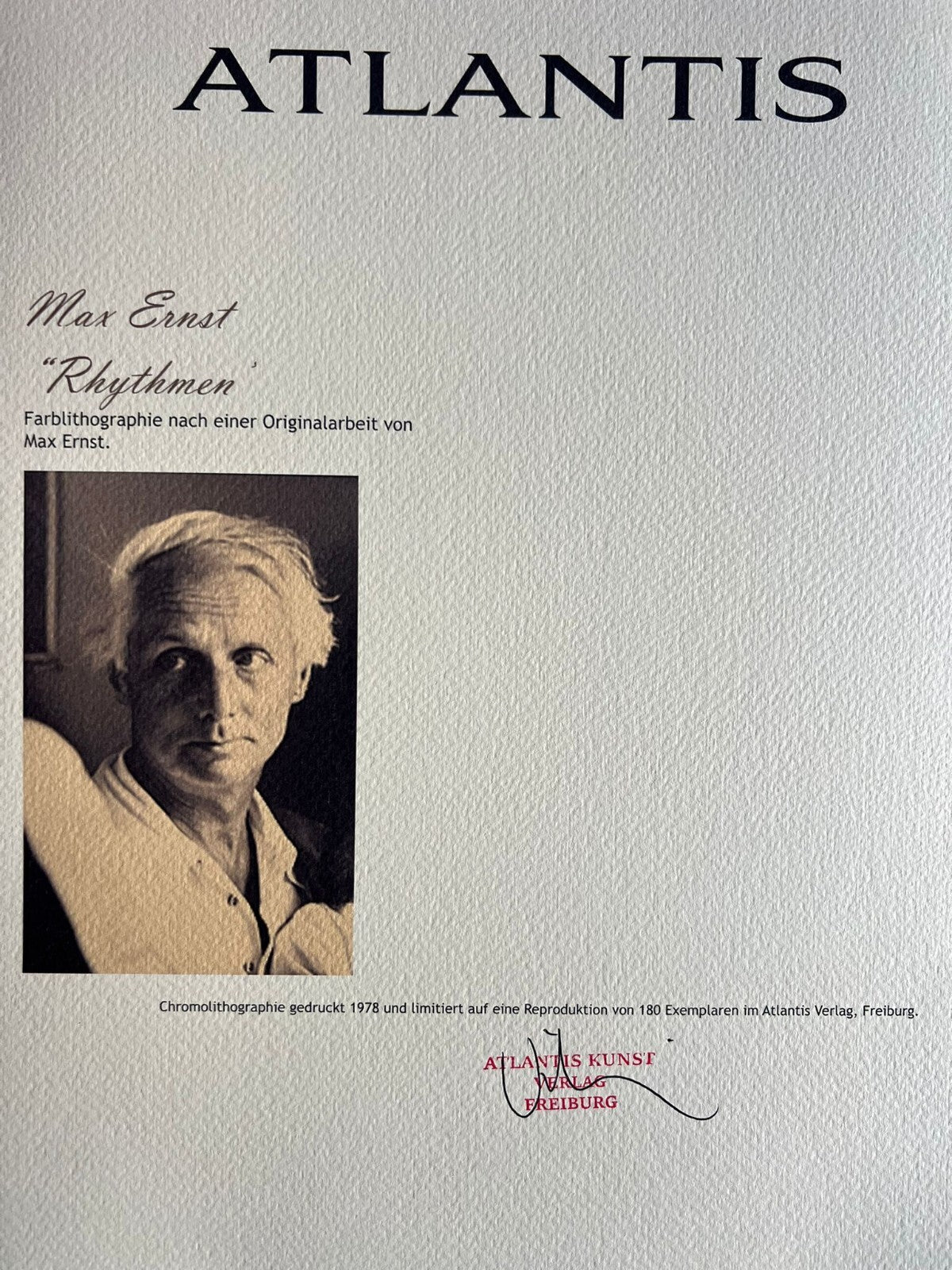 Chromolithography printed in 1978 in 180 specimens by Atlantis Verlag, Freiburg
