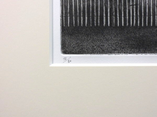 Michel Ciry's signed etching 'Return of the Prodigal Son,' produced in 1980, is framed and part of a limited edition of 80, showcasing modernist style.