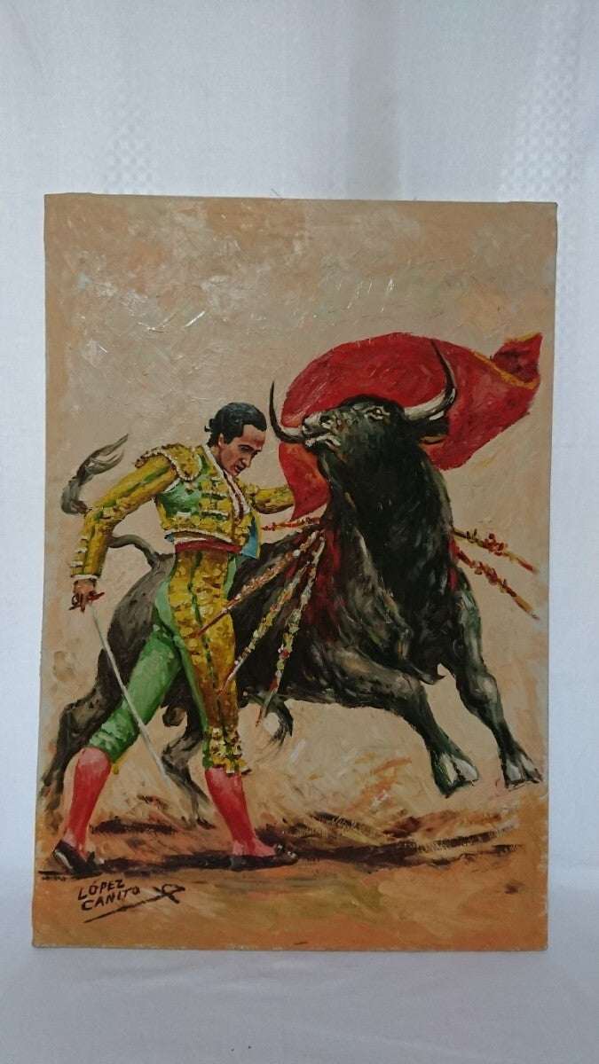 Original lopez canito Oil Painting on Canvas " MULETA " Signed Framed