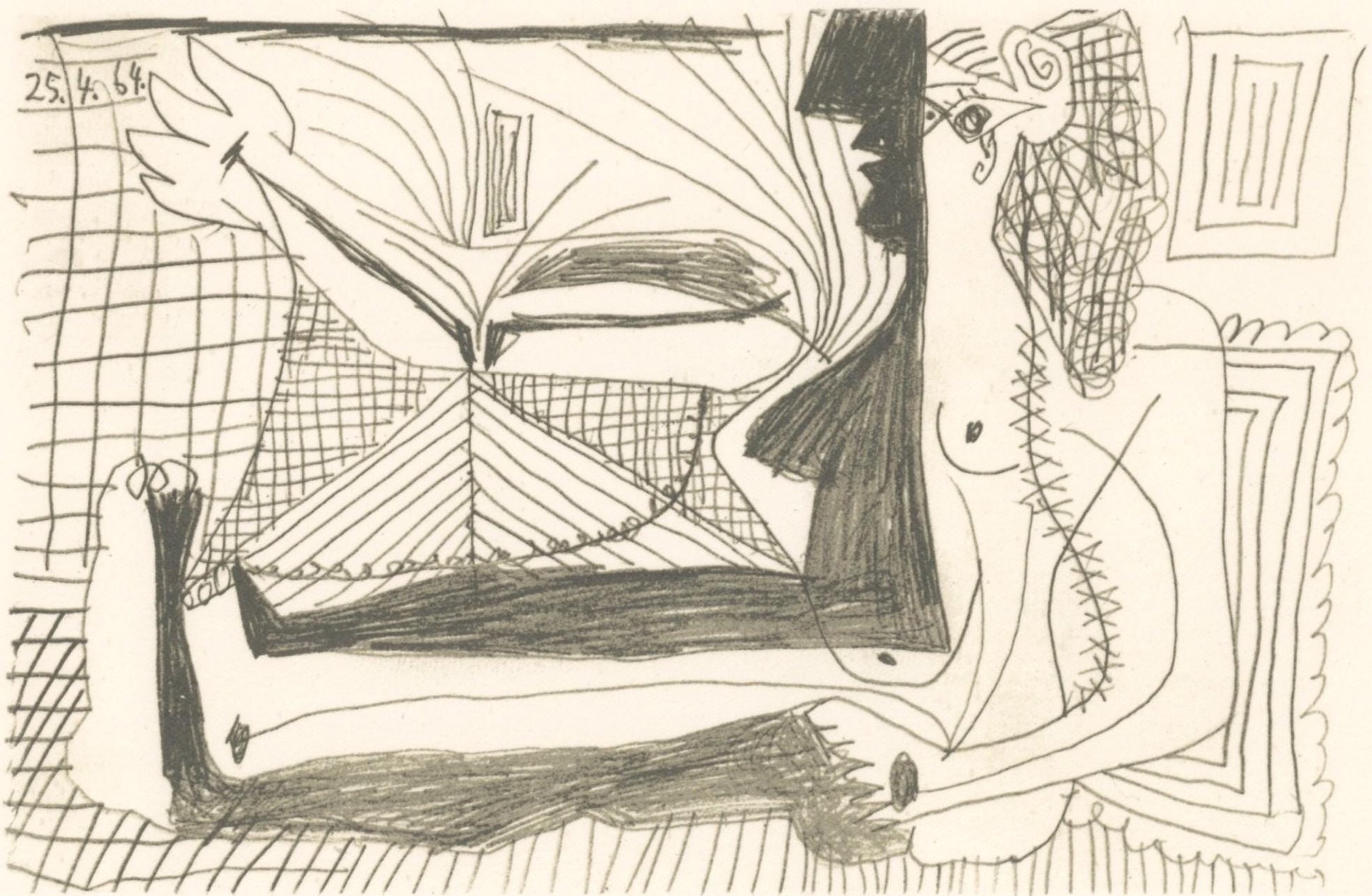 Pablo Picasso, 25.4.64. (Cramer 148), Le Got Du Bonheur, Mixed Media Lithograph