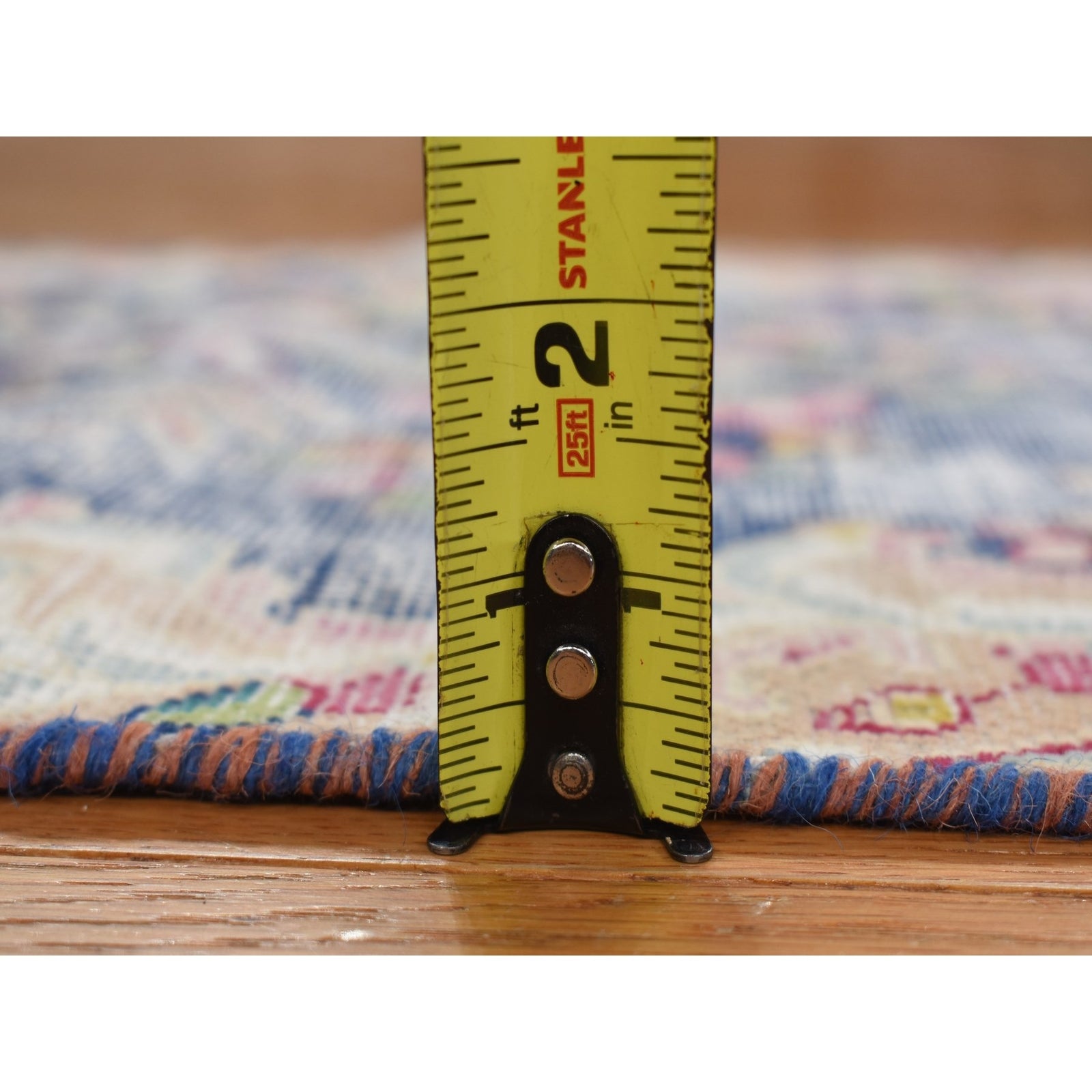 1'6"X2' Blue Wool Old And Worn Zoroastrian Karman Hand Knotted Mat Rug