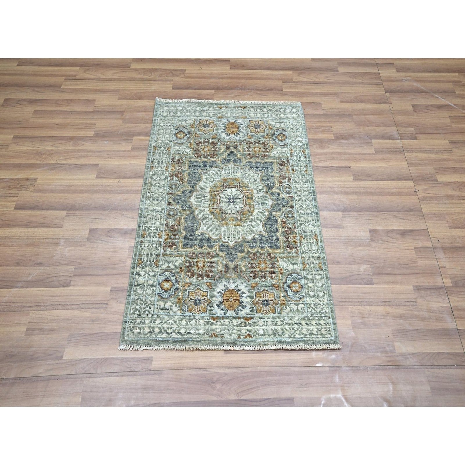 2'1"X3'1" Sage Green Rug Wool Pre Historic Mamluk Design Hand Knotted Mat