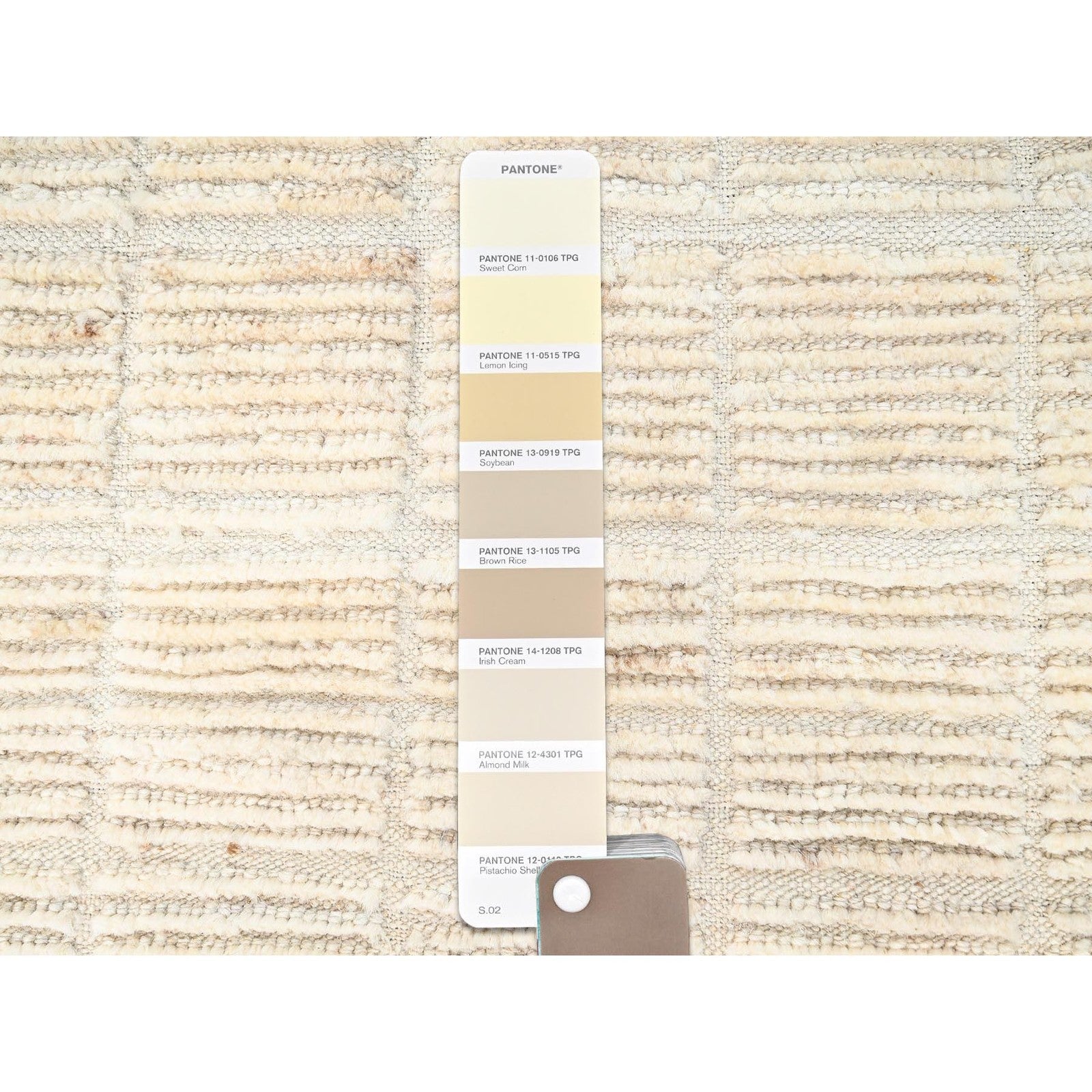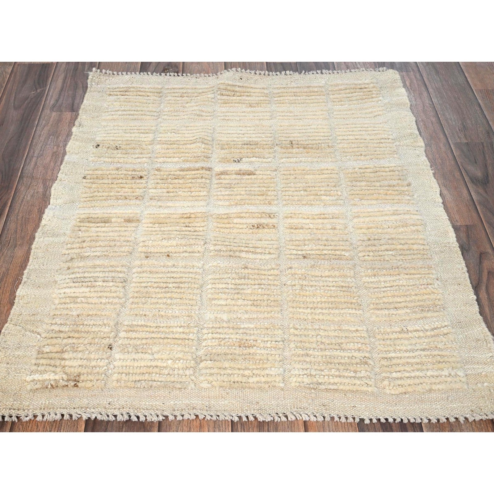2'3"X2'9" Ivory Mat Rug Moroccan Weave Grid Design Wool Hand Knotted Sample