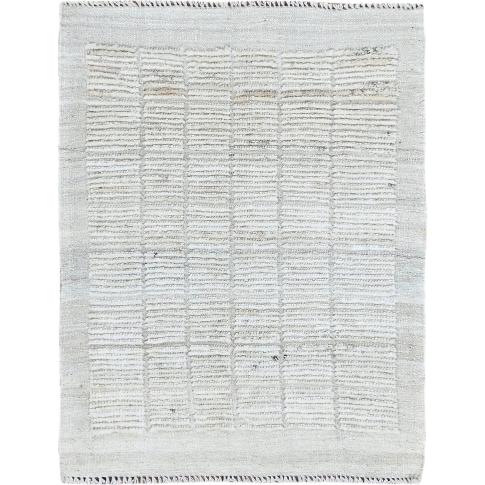 2'4"X3' Ivory Hand Knotted Moroccan Weave With Box Design All Wool Mat Rug