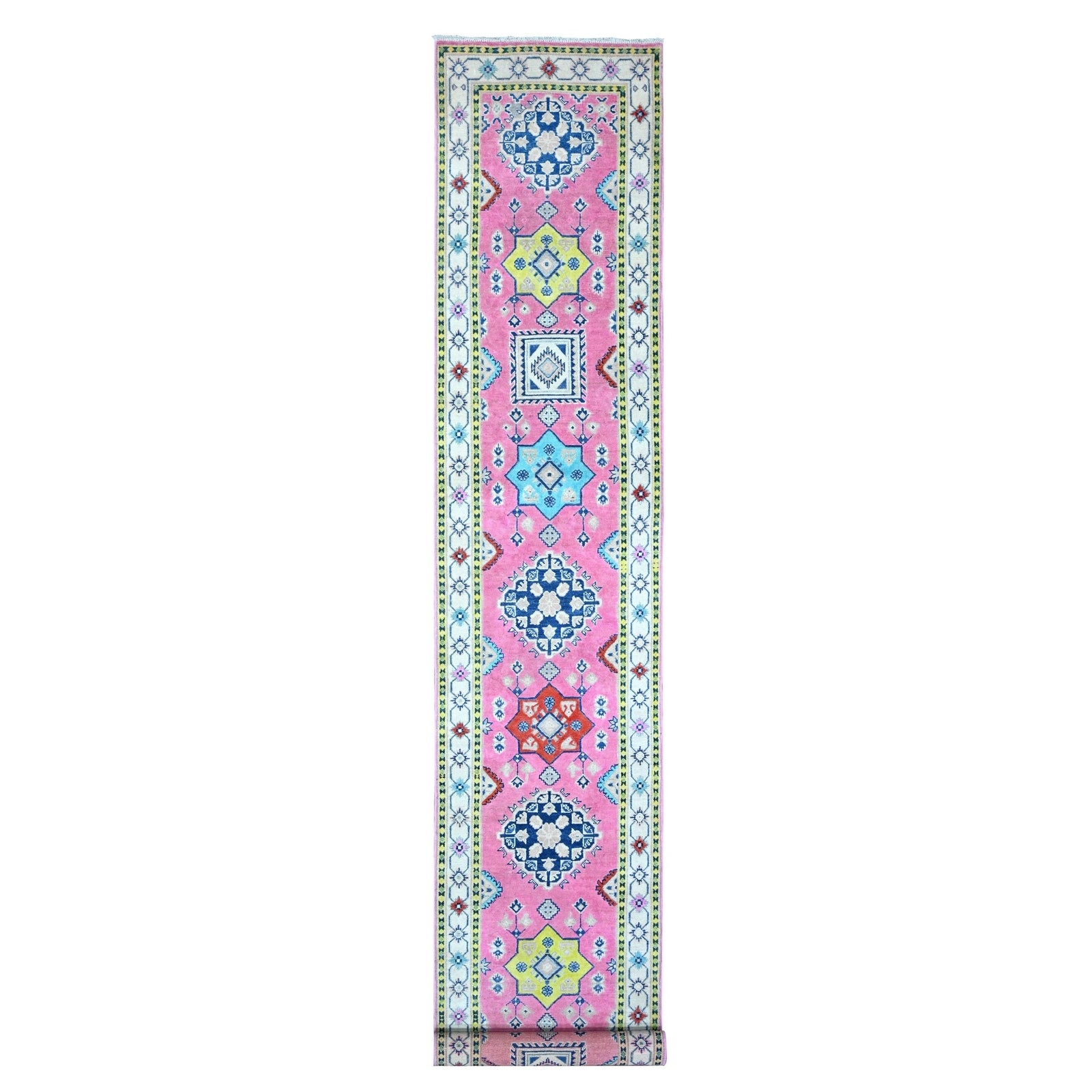 2'6"X15'6" Azalea Pink Pure Wool Fusion Kazak Runner Oriental Rug