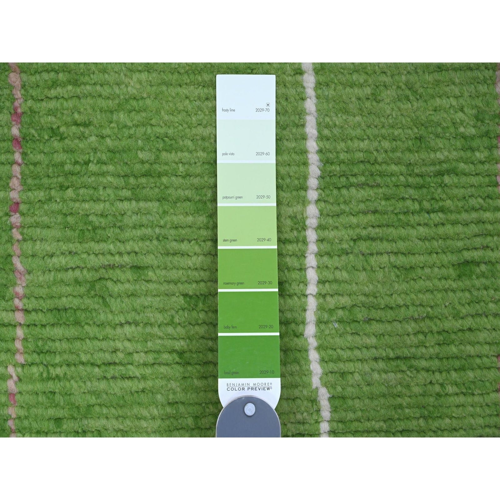 2'6"X9'1" Green Moroccan Weave Kite Design Hand Knotted Wool Runner Rug