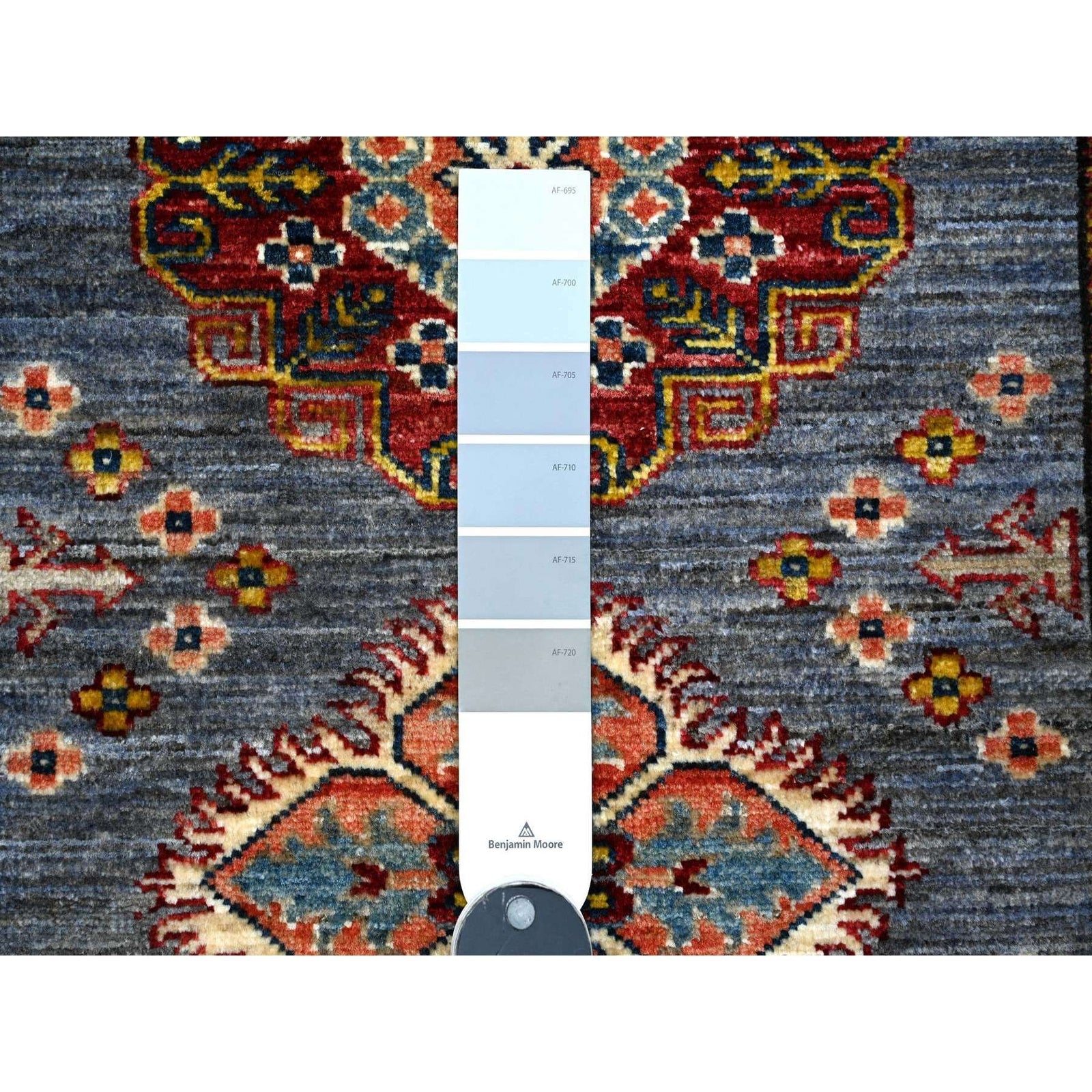 2'7"X8'4" Gray Hand Knotted Super Kazak Runner All Wool Oriental Rug