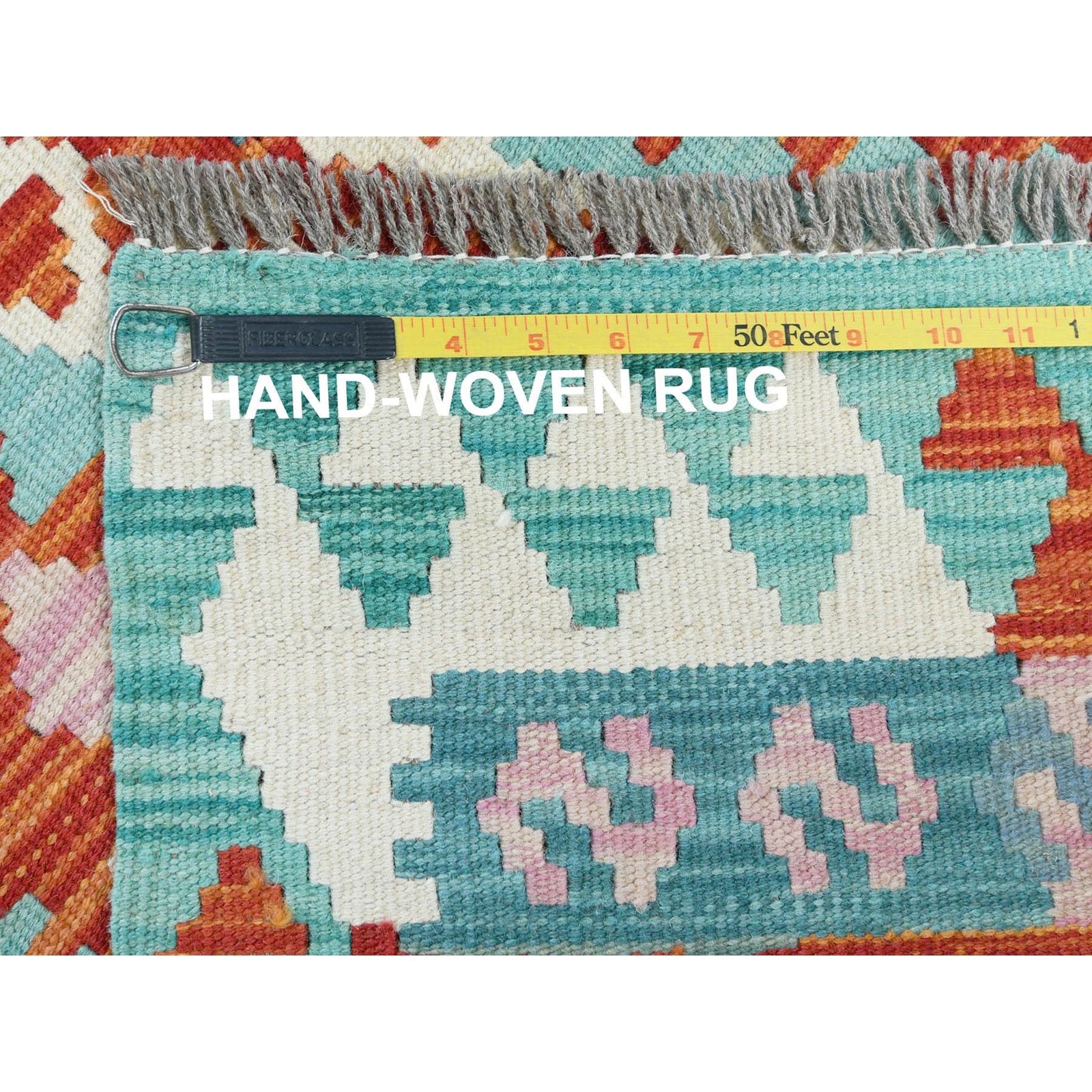 2'8"X15'5" Colorful Afghan Kilim Geometric Hand Woven Pure Wool Runner