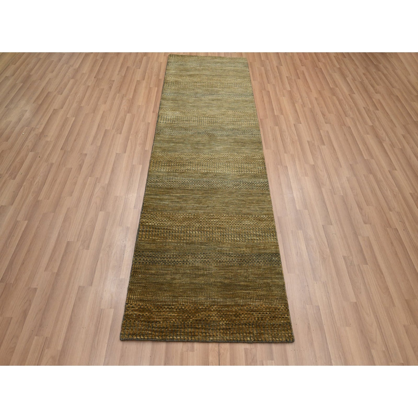 2'8"X8' Almond Brown Hand Knotted Grass Design Wool And Silk Runner Rug