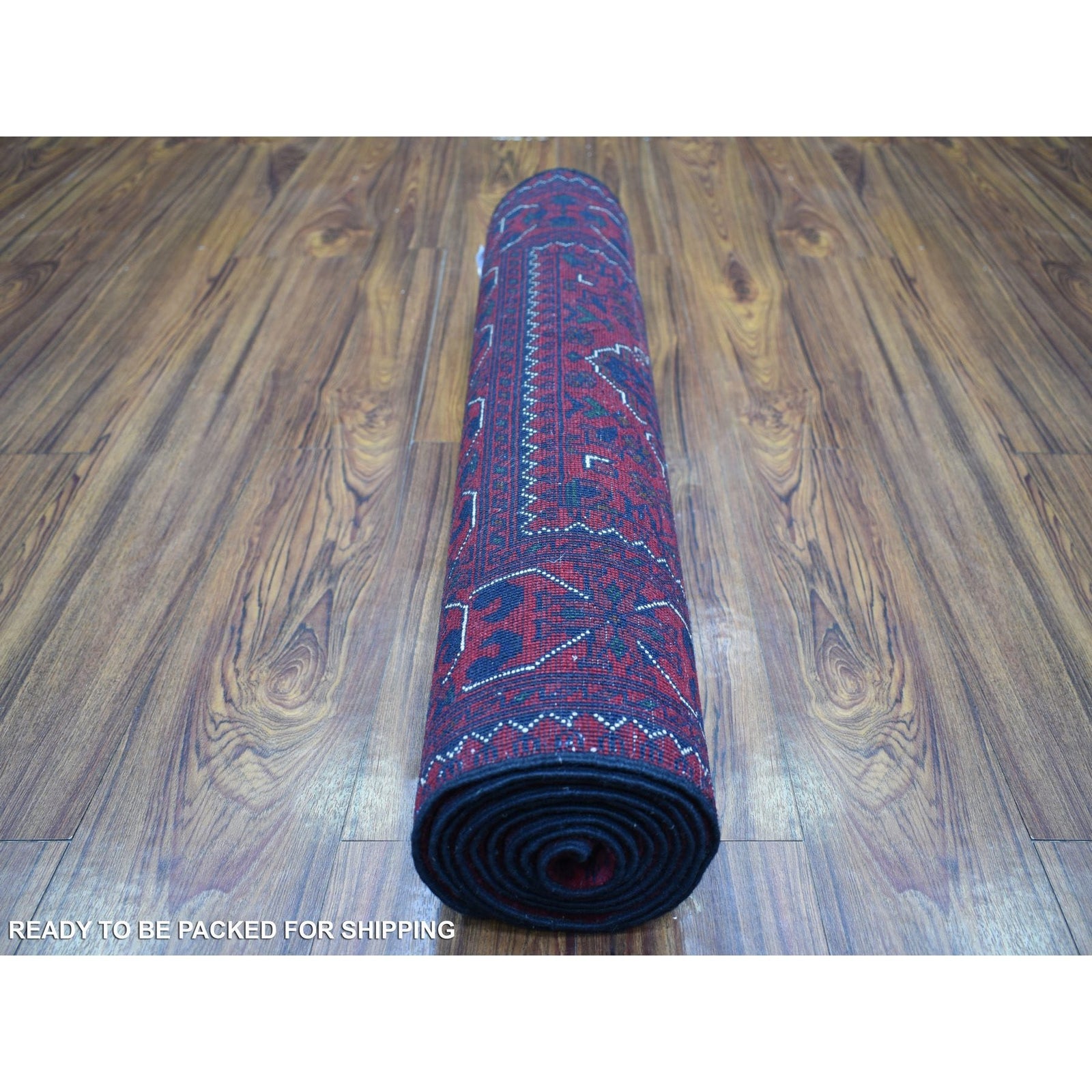 2'8"X9'7" Red Tribal Design Hand Knotted Afghan Khamyab Wool Runner Rug