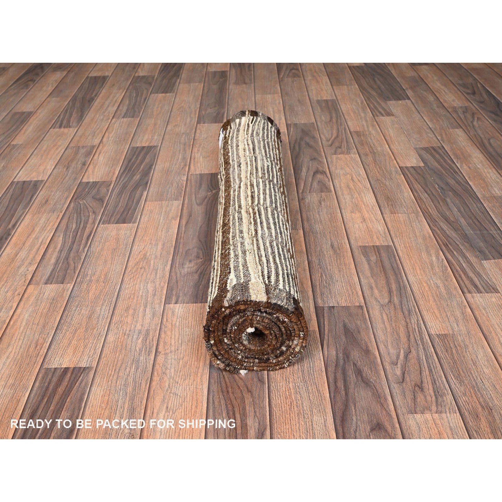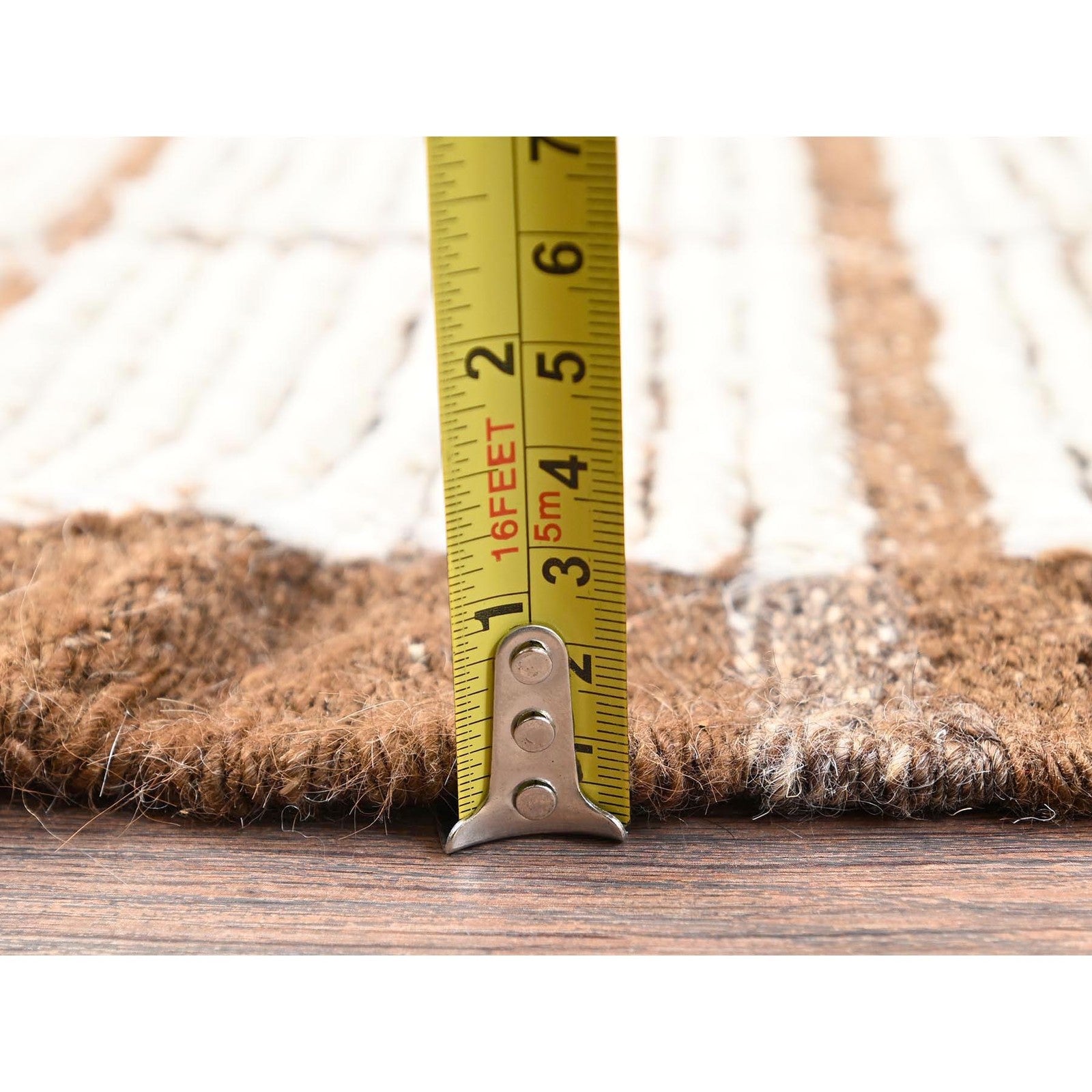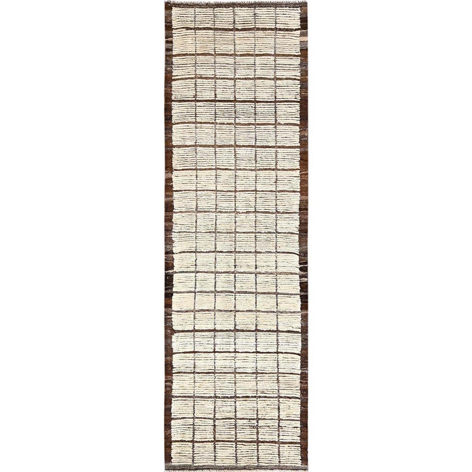 2'9"X9'5" Ivory Hand Knotted Rug Moroccan Weave Grid Design Wool Runner