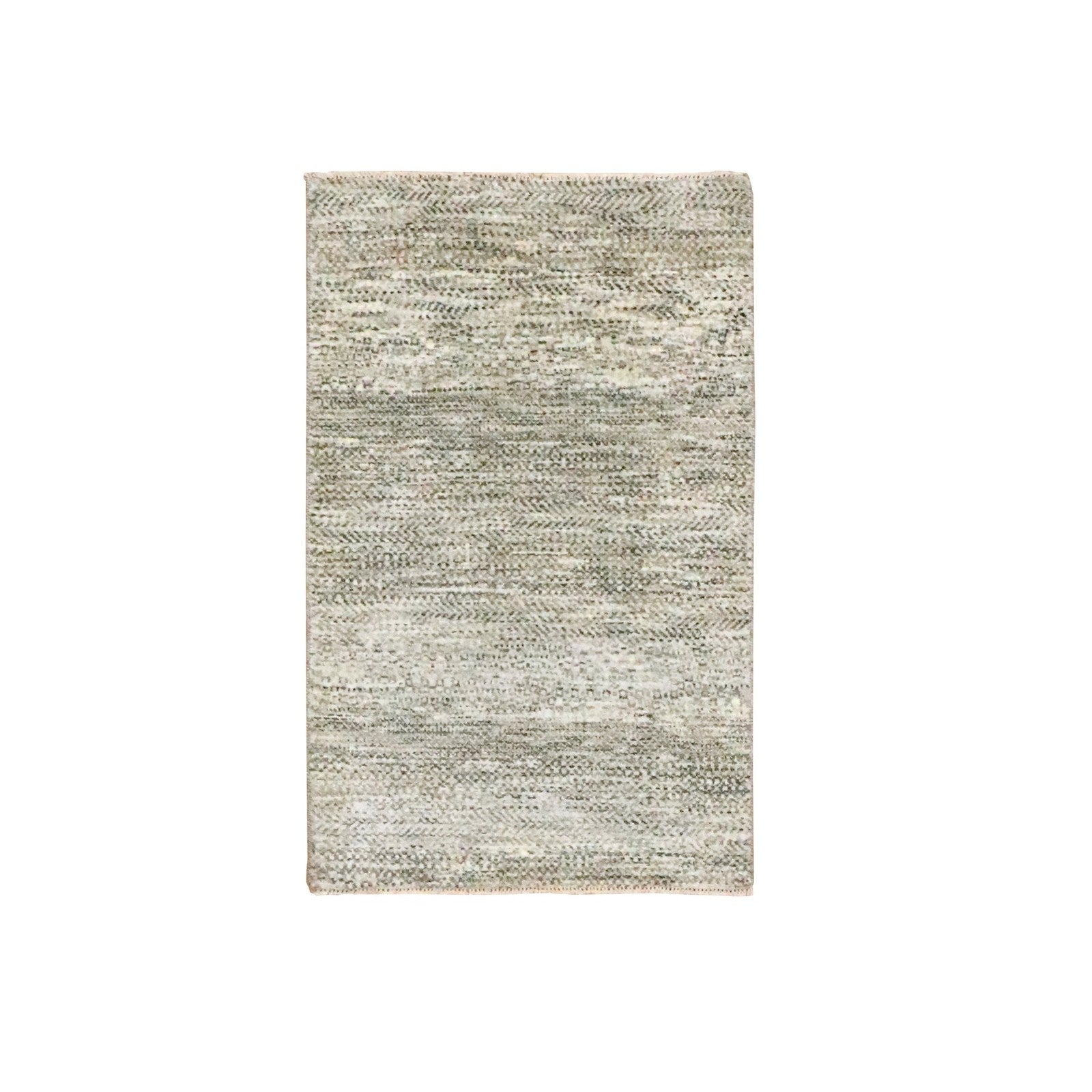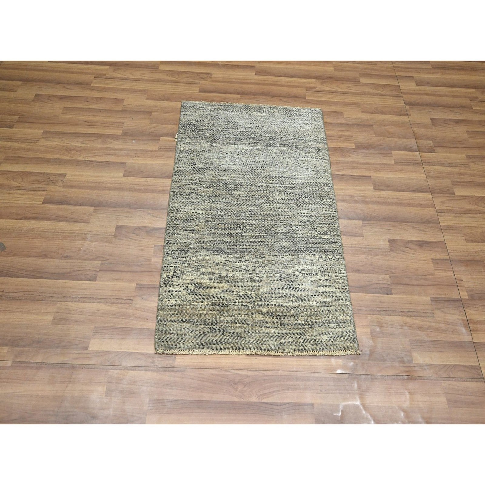 2'X3' Beige Grass Design Hand Knotted Undyed Natural Wool Mat Small Rug