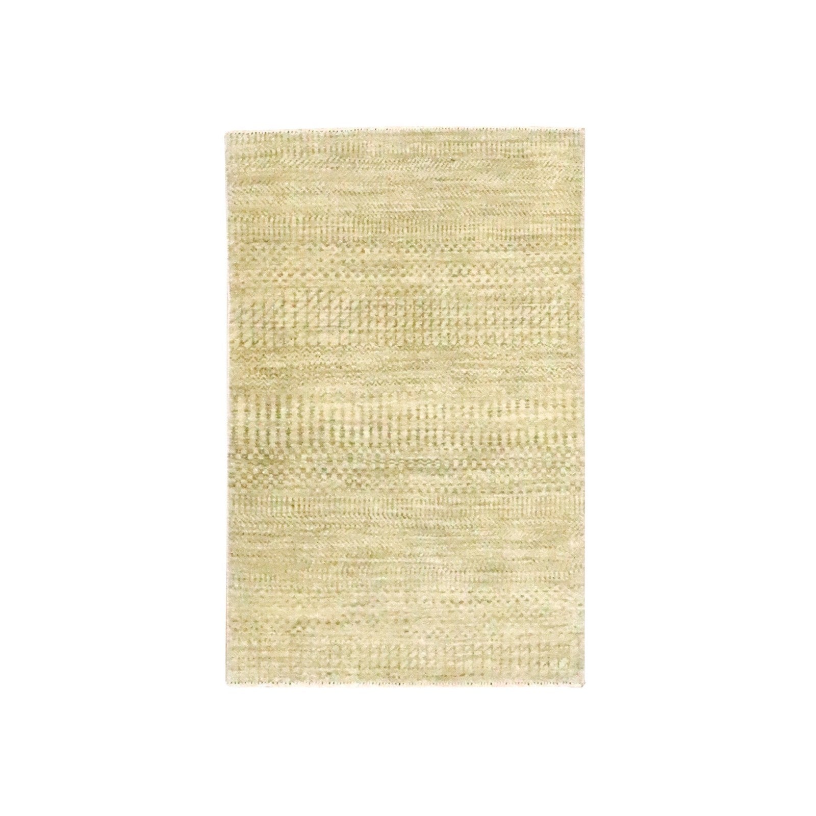 2'X3' Beige Modern Grass Design Hand Knotted Wool With Silk Sample Rug