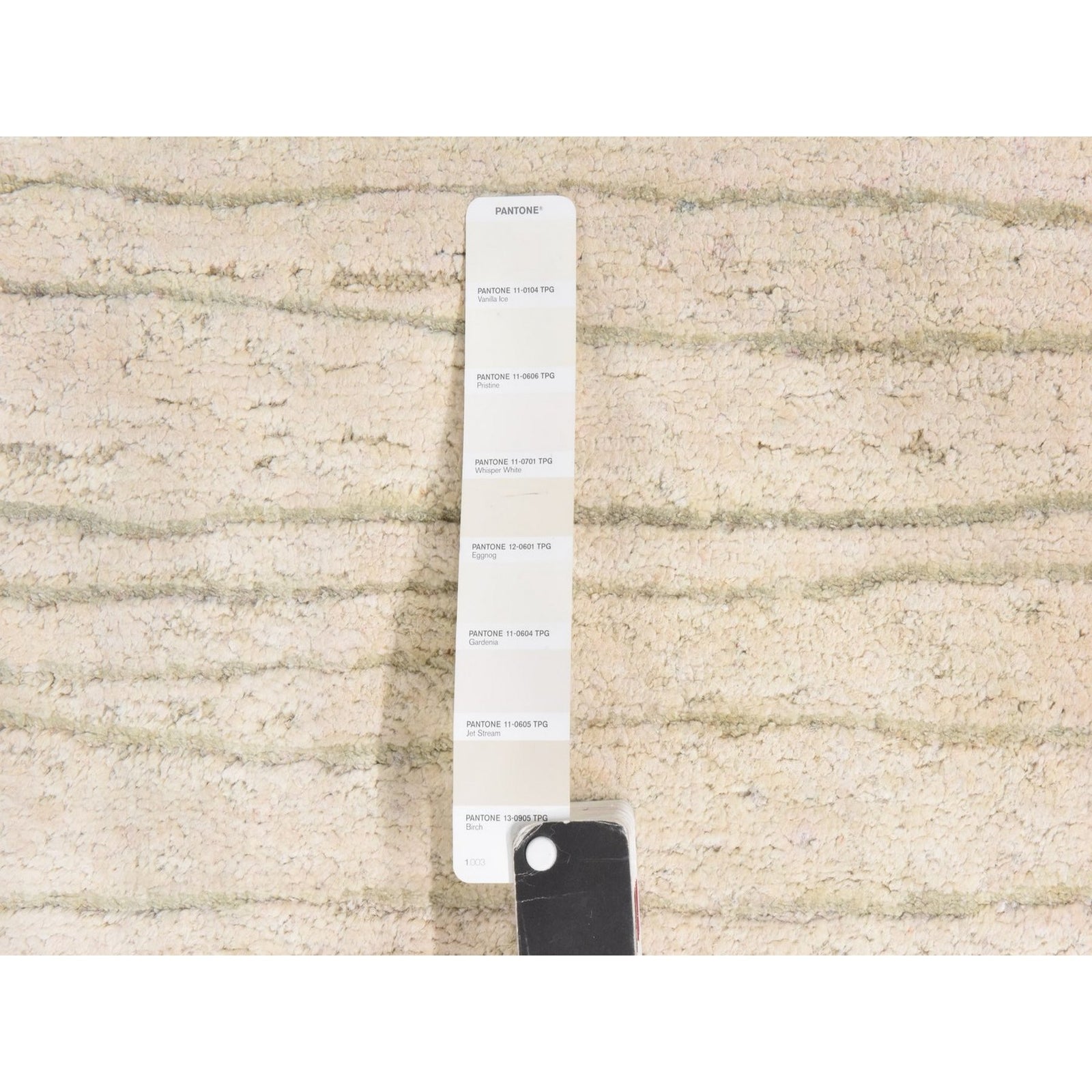 2'X3' Ivory Modern Wool And Silk Sample Strike Off Hand Knotted Mat Rug