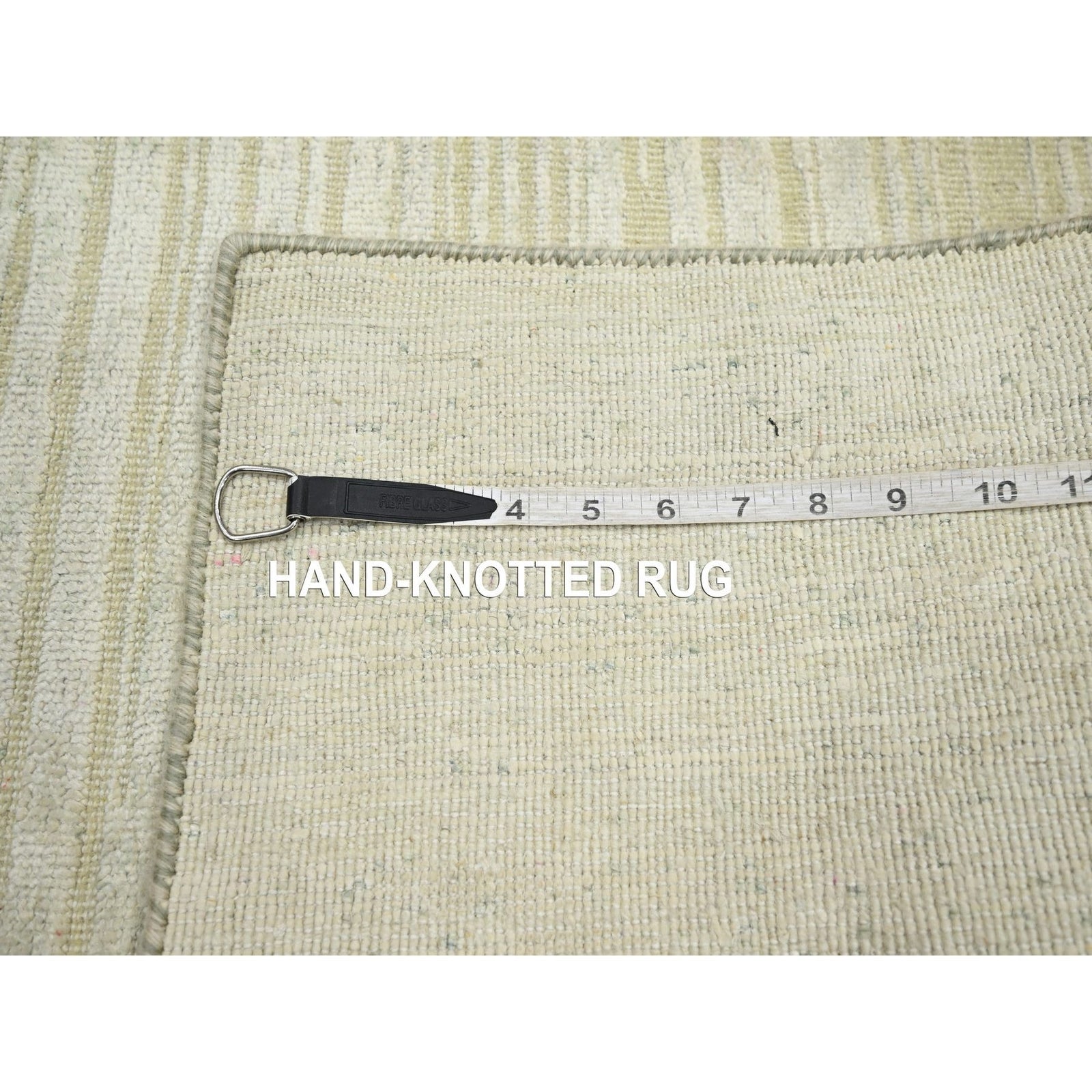 2'X3' Photon White Plain Line Design Silk With Oxidized Wool Mat Rug