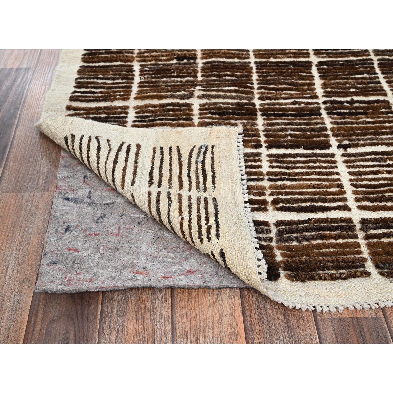4'10"X6'4" Brown Moroccan Weave Grid Design Hand Knotted Natural Wool Rug