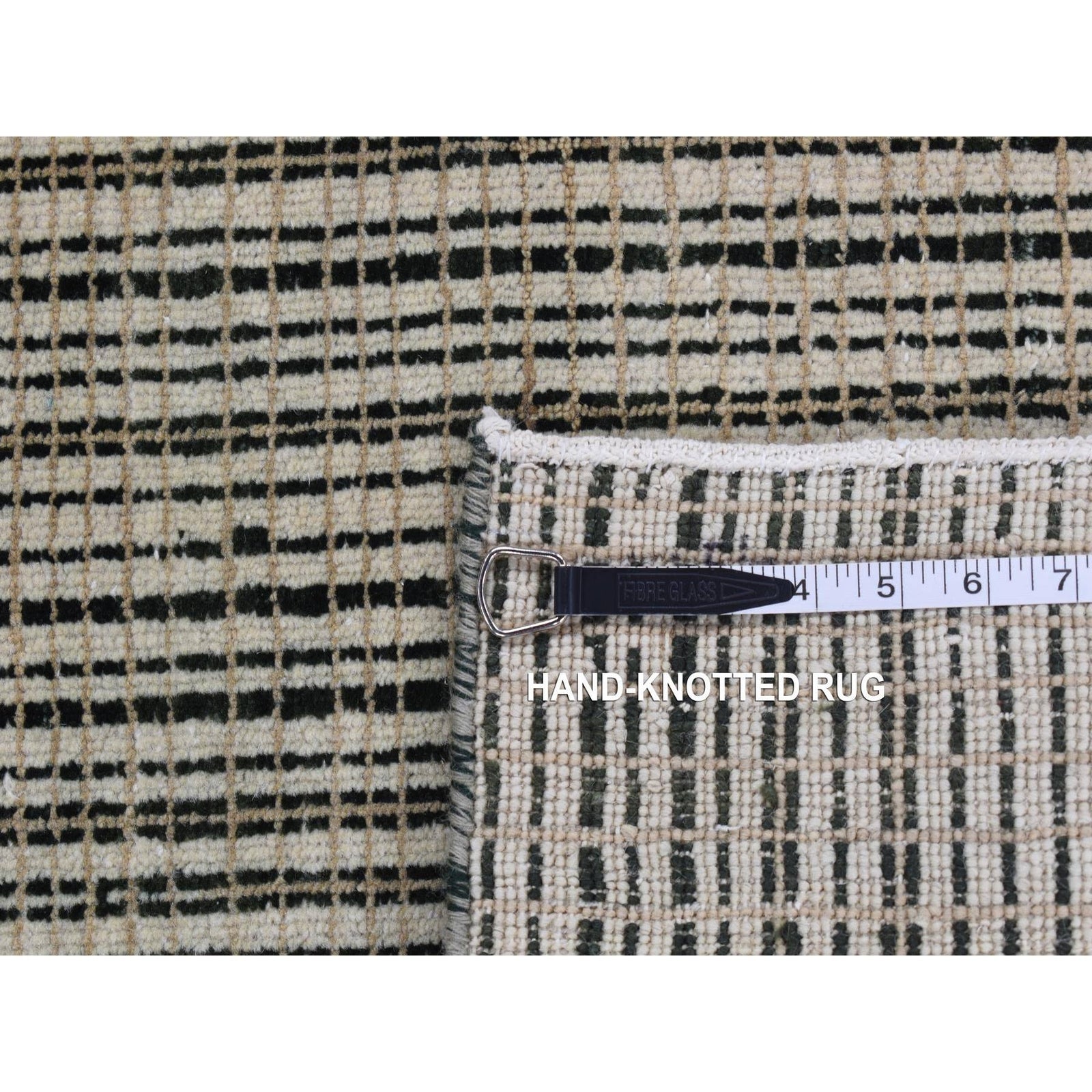 4'X5'10" Green Modern Criss Cross Design Pure Wool Hand Knotted Rug