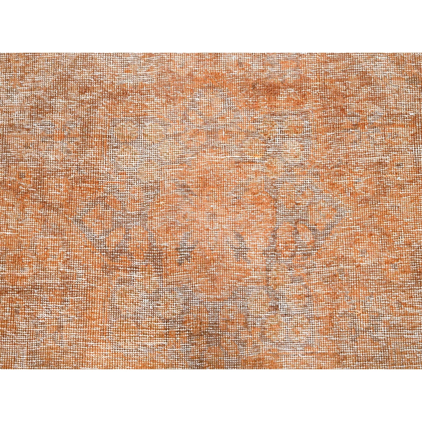 6'1"X9' Orange Overdyed Old Tebraz Distressed Look Wool Hand Knotted Rug