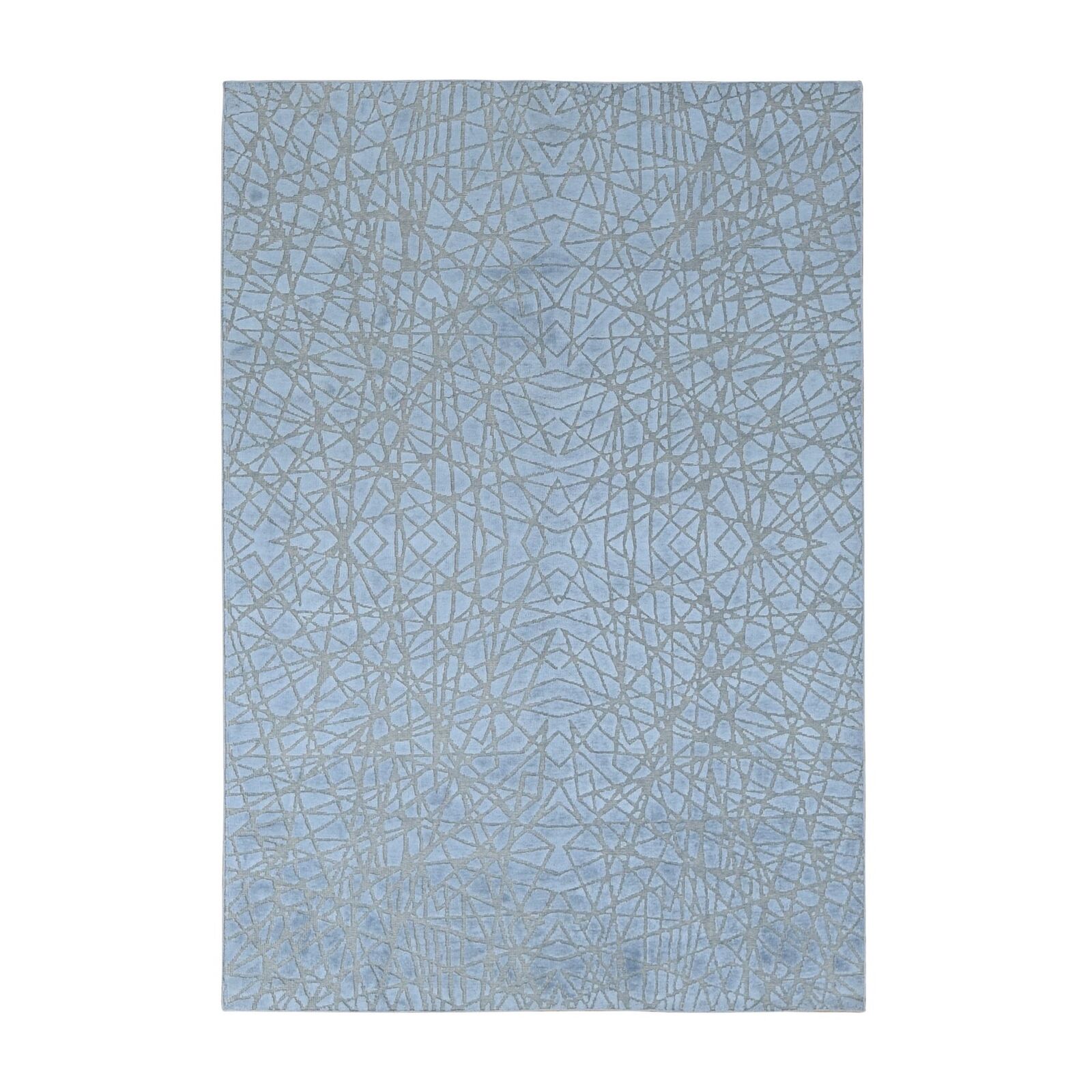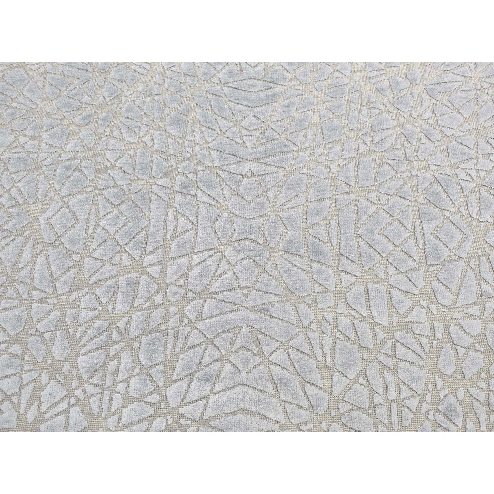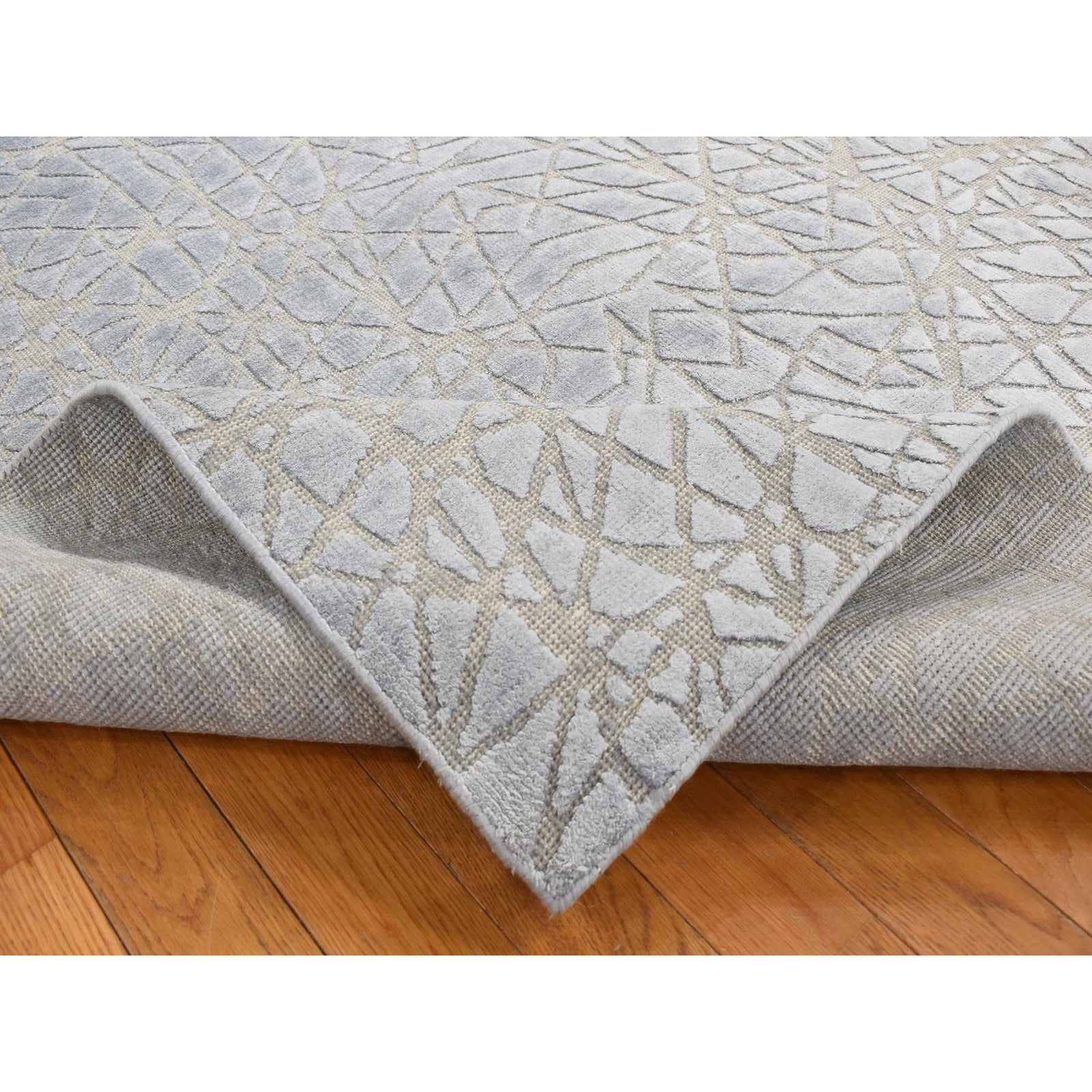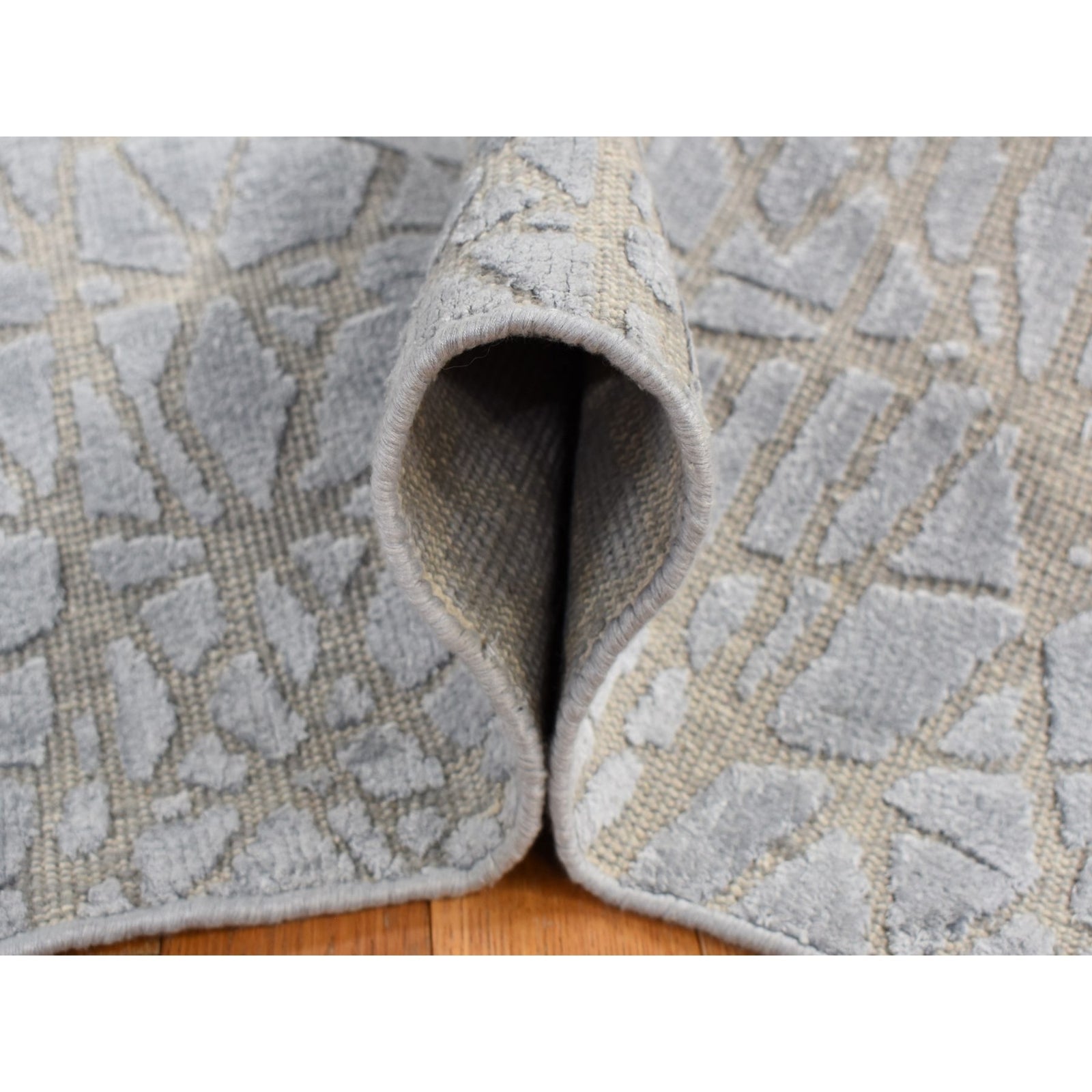 6'X8'10" Gray Flat Pile With Raised Silk Hand Knotted Tone On Tone Rug