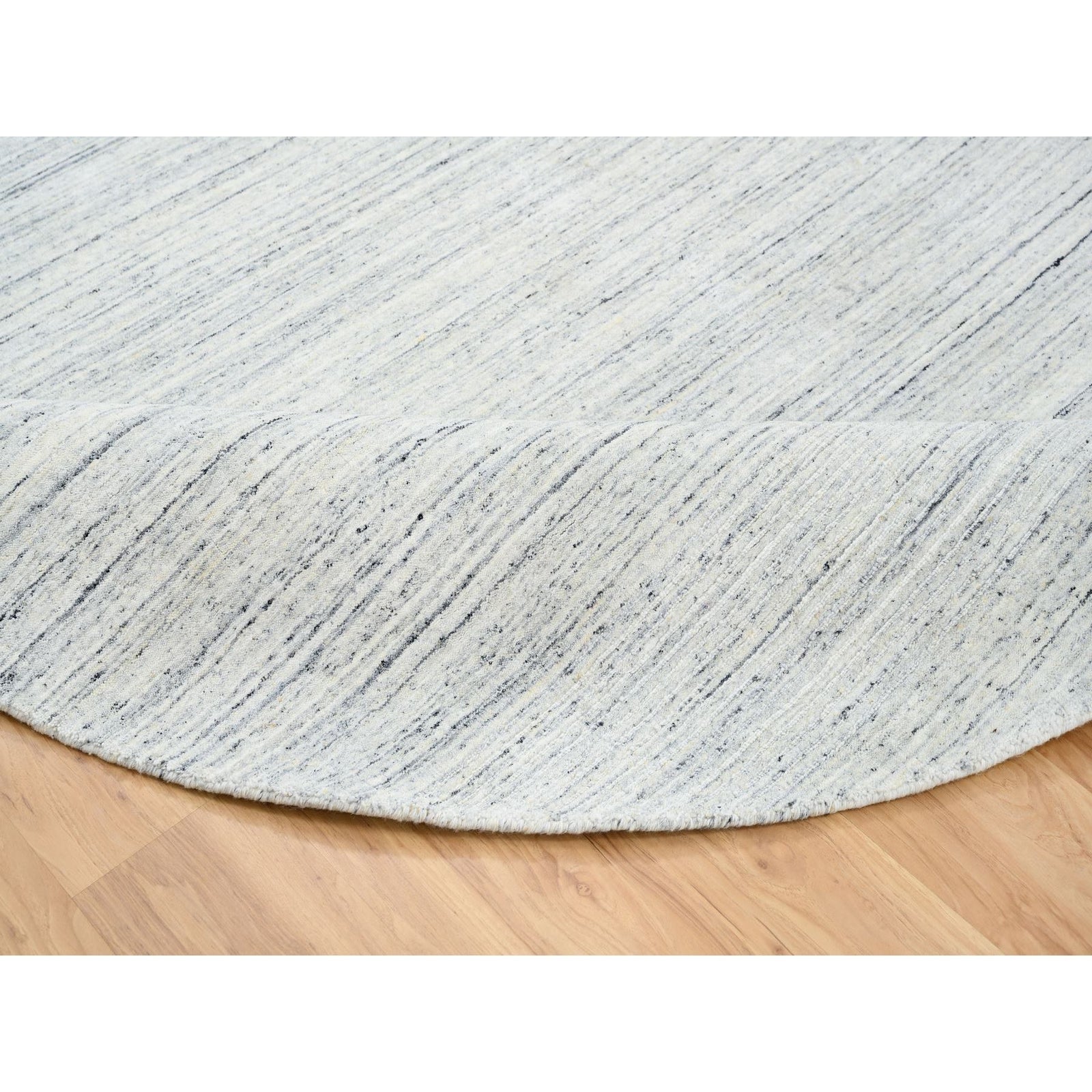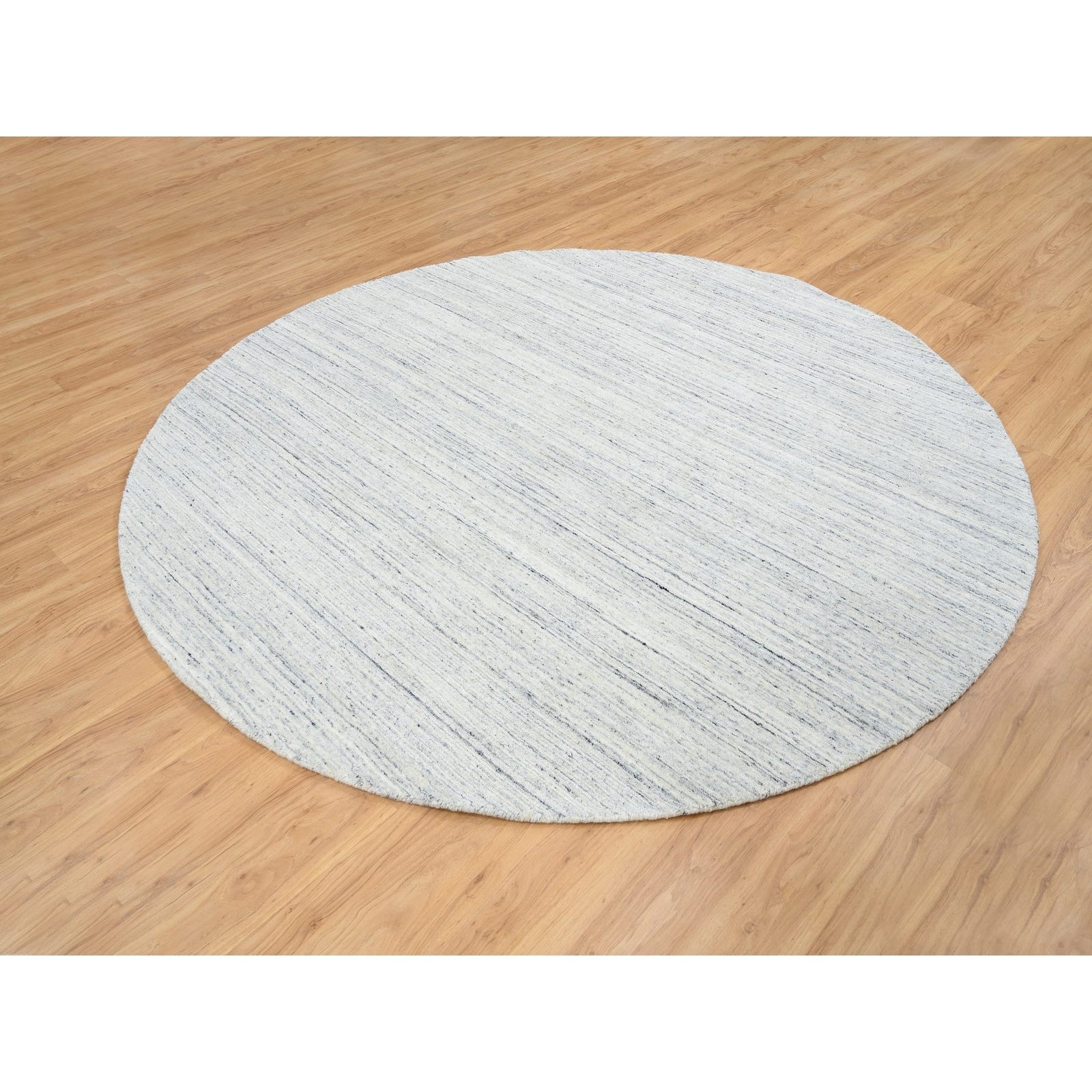 7'10"X7'10" Ivory Wool Hand Loomed Plain Modern Striae Design Round Rug