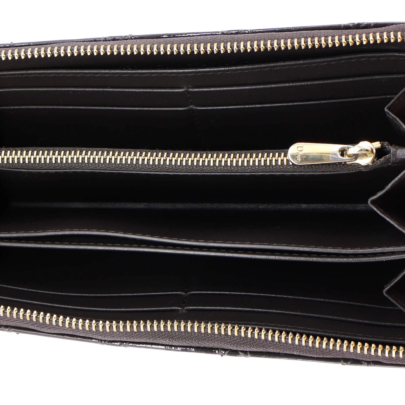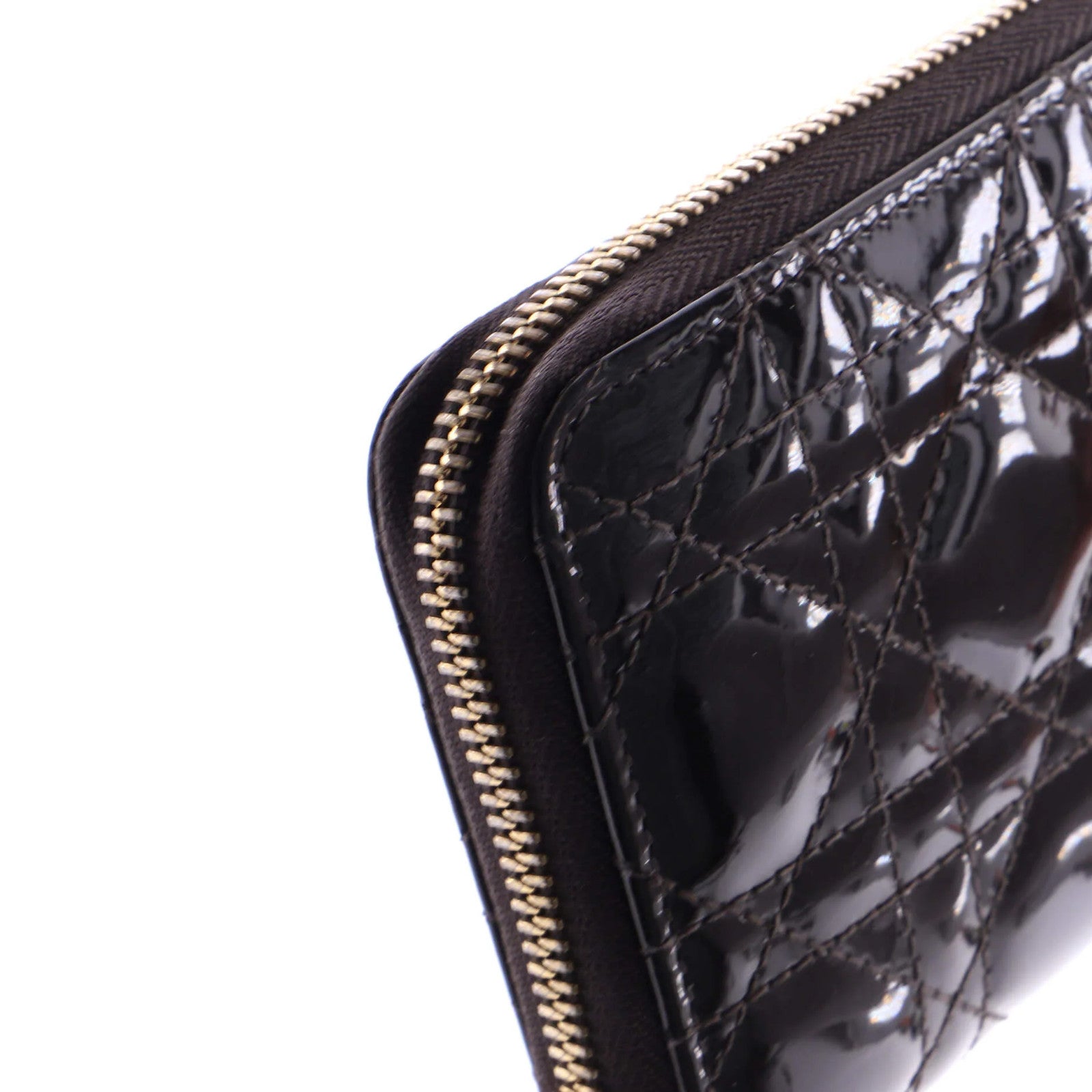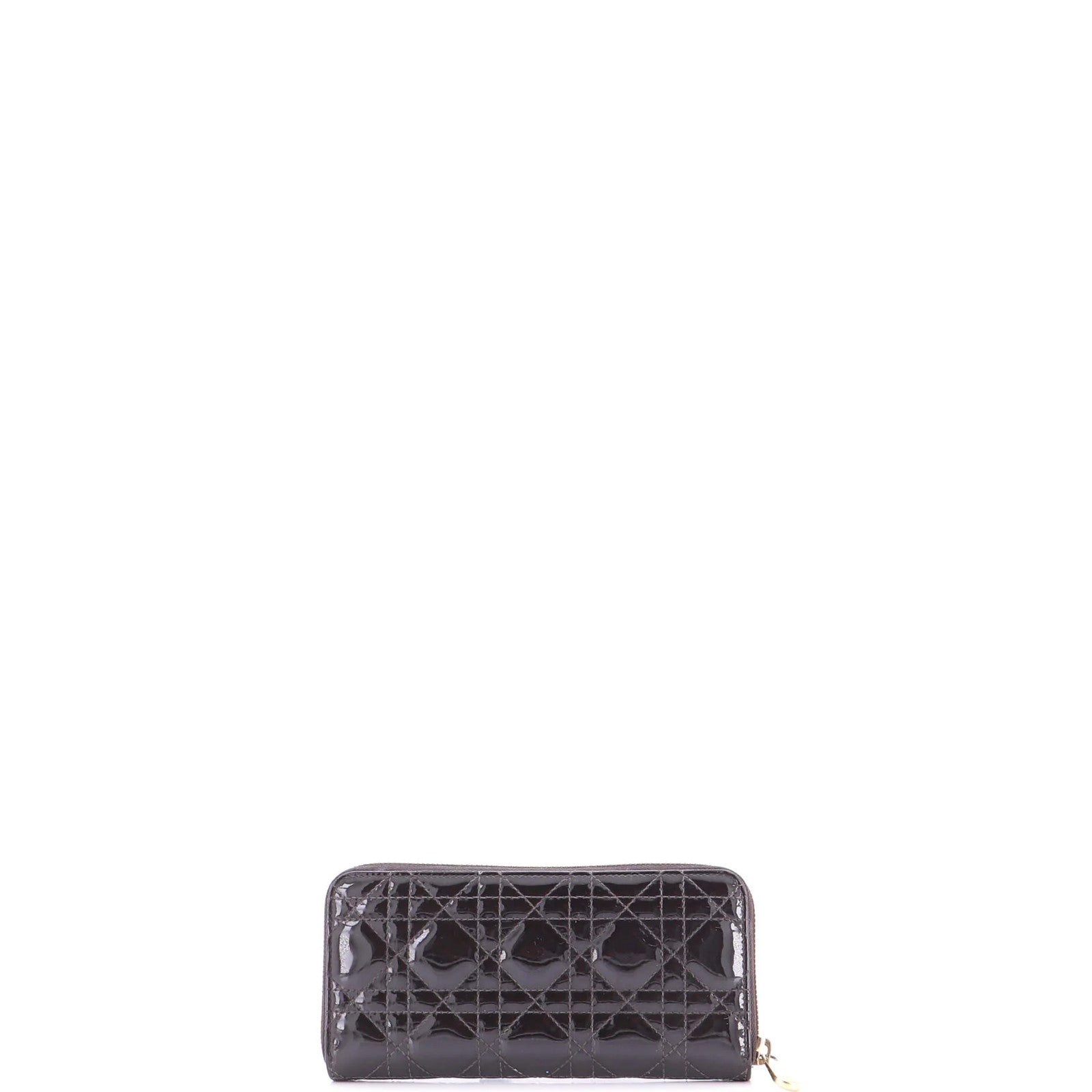 Christian Dior Lady Dior Zip Around Wallet Cannage Quilt Patent Long