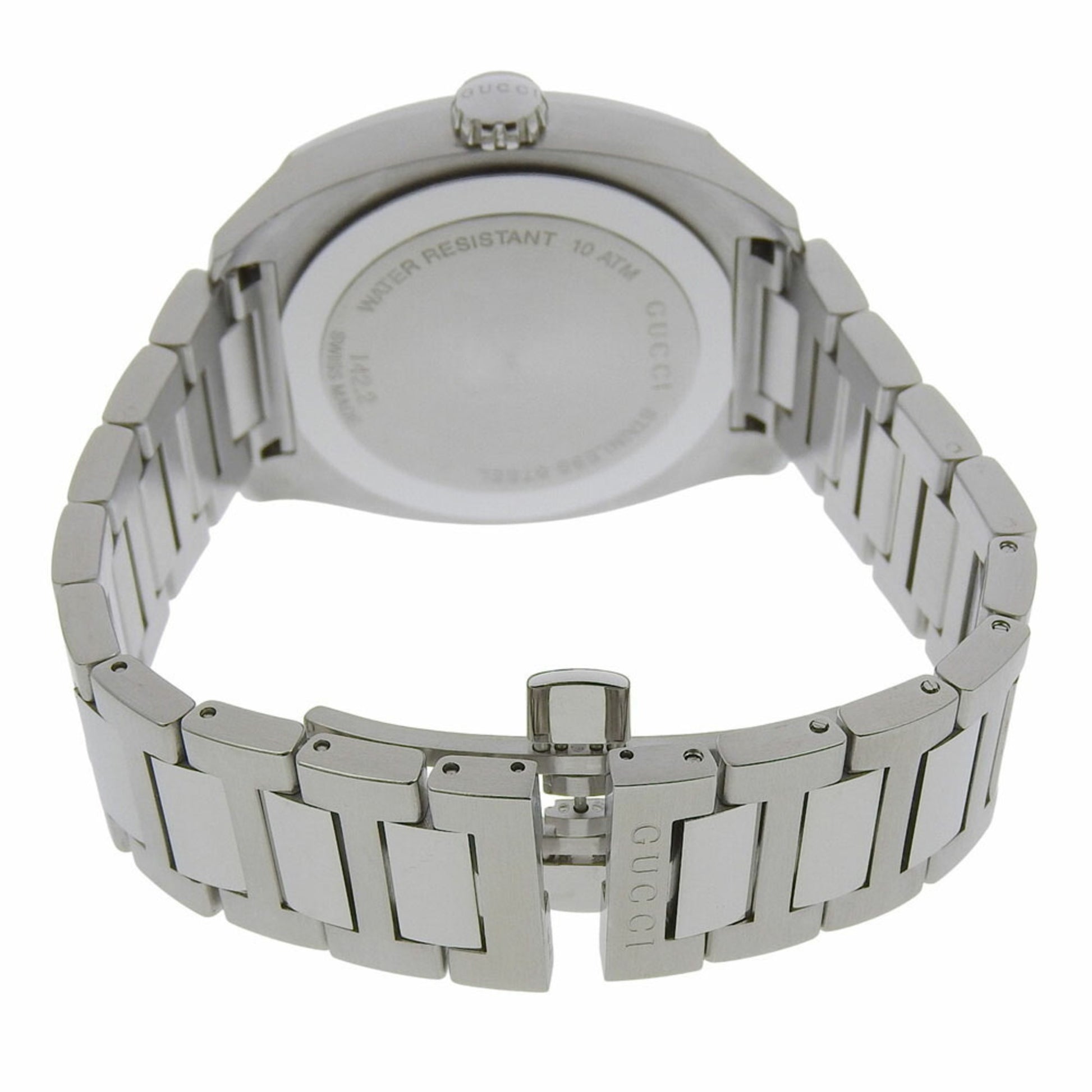 Gucci Date 100M Ya142201 142 2 Black Dial Stainless Steel Quartz Watch With Battery