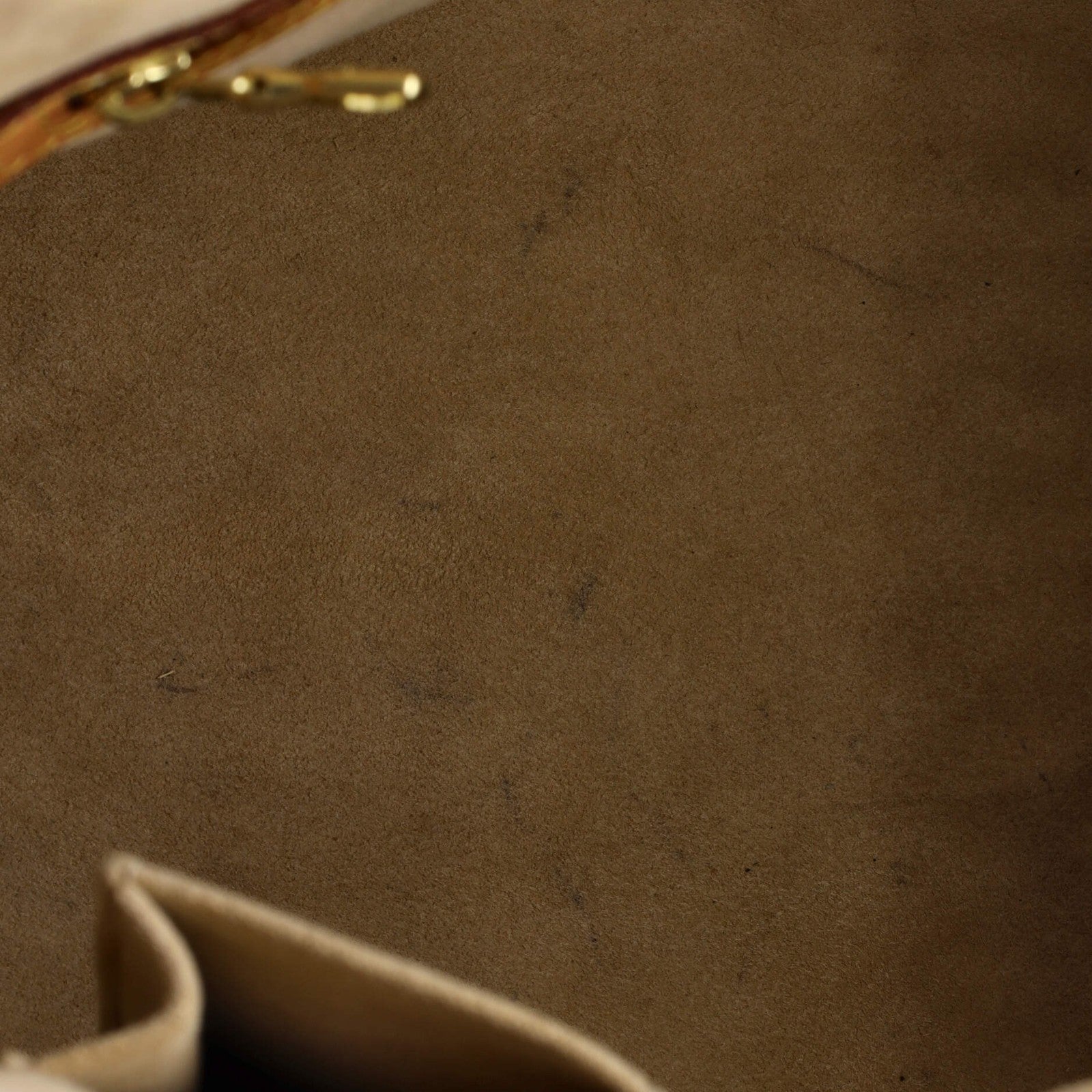 Condition: Fair. Exterior: heavy edge wear, heavy corner wear, scuffs, creases, discoloration. Handles/Straps: heavy discoloration, scuffs, creases, cracking. Interior: Pen marks, heavy discoloration, moderate odor, scuffs, stains. Hardware: scratches, tarnished