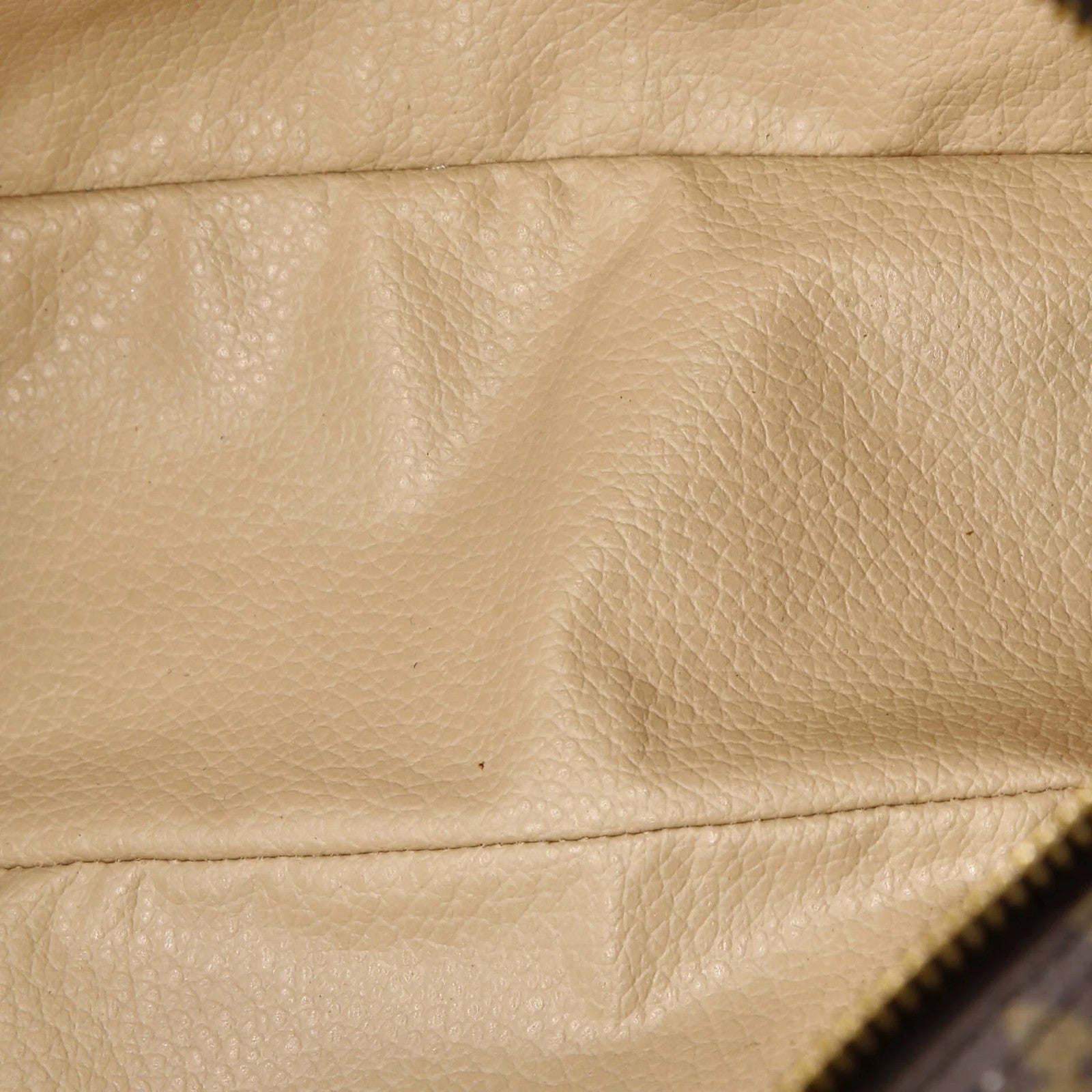 Condition: Good. Odor in interior. Creasing and wear on exterior, moderate wear on exterior edges and in interior. Minor darkening and scuffs in interior, scratches and tarnish on hardware.