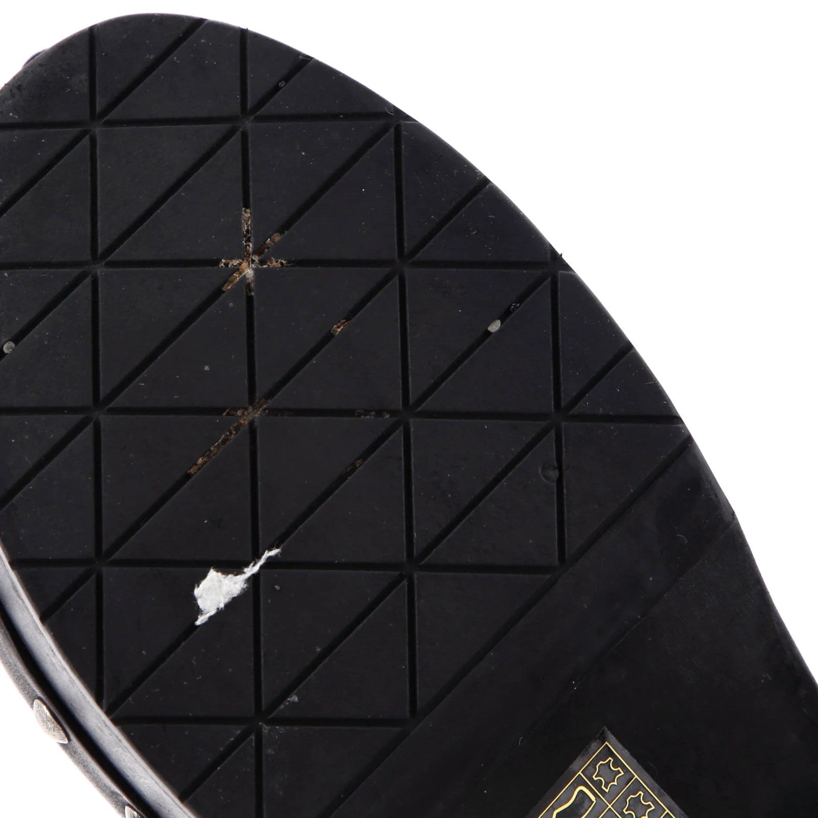 Condition: Very good. Creasing and scuffs throughout, indentations on midsoles, discoloration and marks in interior, peeling, discoloration, stains, and scuffs on outer soles, scratches on hardware.